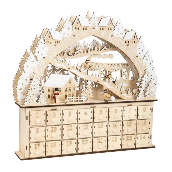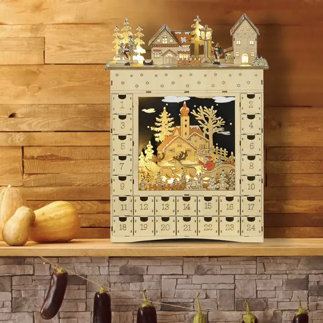 Calendrier de l'avent led 24 tiroirs decoration lumineuse noël beige