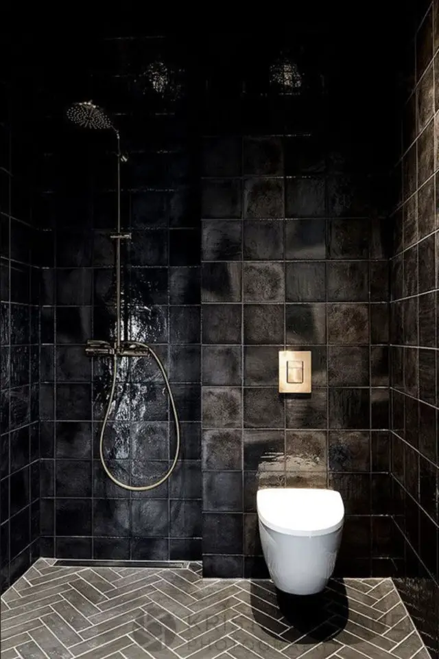 Pour rester dans les pièces d'eau, l'un des revêtements qui se retrouve à coup sûr c'est la faïence / le carrelage. Vous allez me dire, dans une cuisine ou une salle de bain, c'est assez normal. Oui, mais, on ne va pas prendre n'importe quel carrelage. Il n'y a pas un modèle particulier mais plus un style ou deux sur lesquels vous pouvez vous inspirer. D'un côté, il arrive qu'on trouve du carrelage avec un look vintage, comme le fameux carrelage métro qui va donner de la personnalité à votre pièce. D'un autre côté, on peut partir sur un carrelage plus simple et même passe-partout mais dans des couleurs plus sombres.