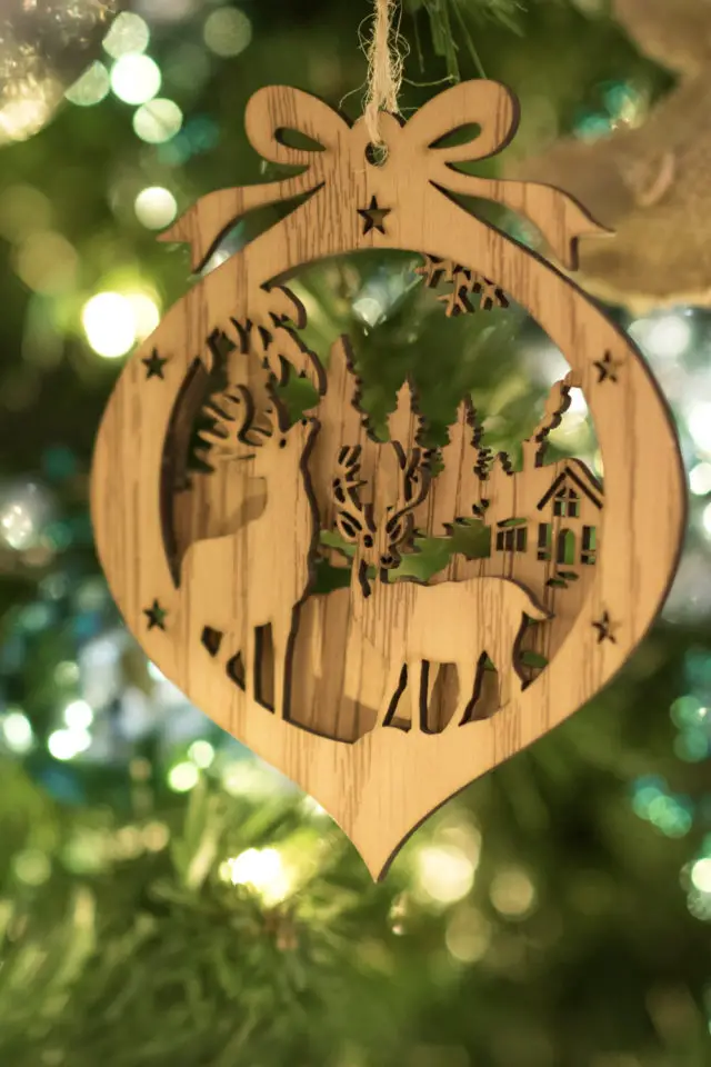 La décoration de sapin - à la place des boules (ou en complément), des rondins peuvent trouver place dans le sapin. On peut y noter le nom de chaque membre de la famille et créer une déco vraiment personnelle. Il existe aussi tout un tas de décoration à suspendre en bois comme des étoiles, des sapins, des traineaux...