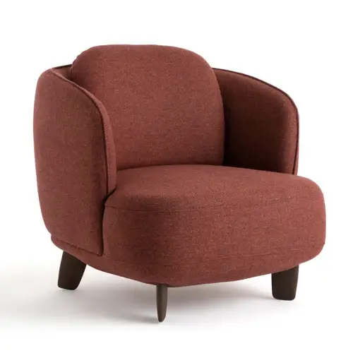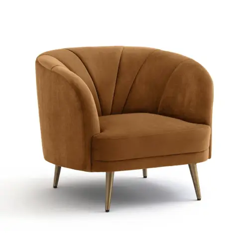 14 • Là aussi on a un sentiment de vintage dans ce salon mais pas uniquement. Le côté color block de la couleur terracotta sur les murs et sur le plafond contraste avec le bleu du canapé incurvé. Malgré les moulures sur les murs et le plafond, un fort sentiment de modernité se dégage de cette pièce de vie. On peut aussi s'intéresser au tableau accroché sur le mur. Les couleurs et la géométrie contribuent à créer une nouvelle perspective dans la pièce.