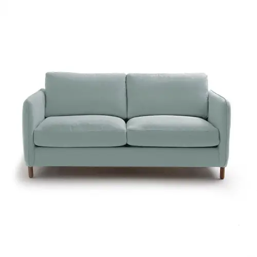 03 • La couleur peut prendre bien des aspects. Ici elle est essentiellement déclinée dans des tonalités pastel. Du rose (canapé, double-rideaux, affiches au mur), du bleu (peinture), du taupe pour souligner le plafond. Et une touche de couleurs plus vives sur la table basse. Cette dernière attire le regard et offre à la pièce un côté plus dynamique, moins attendu.