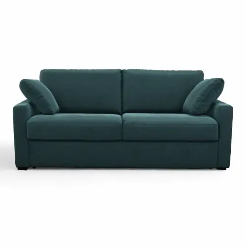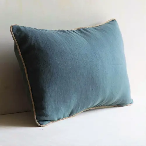06 • Les décors remplis de couleurs ne sont pas nécessairement criards. Travailler les dégradés et les nuances permet de créer une continuité, un certain sens dans votre décoration de salon. En général, cette idée de dégradé est réalisée autour de couleurs neutres. Ici, il est question de couleurs plus franches. Le bleu essentiellement en pastel sur le mur. Plus électrique sur le canapé et le pouf. Et pour que ce ne soit pas trop fade, une touche de rose pour créer un doux contraste et une touche de chaleur.