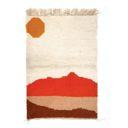 01 • Je commence avec une ambiance plus "neutre", je ne me voyais pas attaquer directement avec 36 couleurs en grande quantité! Ici les couleurs sont un dégradé de couleurs chaudes: du rose, de l'orange, une touche de jaune ocre. Et elles sont essentiellement sur les textiles (housses de coussin, plaid, tapis) et la déco murale. Même si les murs sont blancs (et ils offrent un certain équilibre), ce décor est chaleureux et convivial.