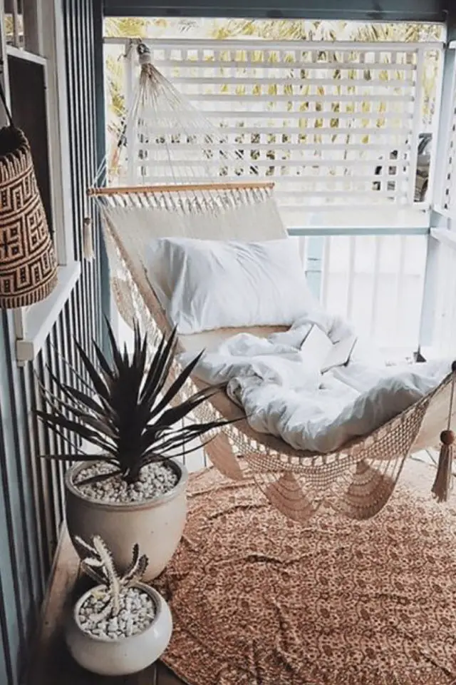 Pour une fois j'attends l'arrivée du printemps avec impatience. Depuis qu'on a quitté la France, c'est la première fois que j'ai un vrai hiver et j'ai clairement besoin de soleil, de voir les arbres en fleurs et de chaleur. (Pour vous donner une idée, on est mi-mars et il a neigé hier...) Du coup, cette envie de beaux jours se retrouve dans mes articles. Et quoi de mieux pour commencer que le balcon? Même petit, il peut être aménagé de manière cosy. Et comme ça prend du temps de trouver le mobilier et la déco adéquats, autant s'y prendre à l'avance. De cette manière tout sera prêt dès l'arrivée des beaux jours. Je suis une grande fan de hamac (même si me voir grimper dedans et en descendre est un grand moment d'absurdité). Le hamac me fait penser à l'Asie, à la douceur de vivre là-bas, au fait de prendre son temps (parce que de toutes façons, il fait trop chaud pour courir!) Il est pratique aussi parce qu'il n'encombre pas le sol (c'est bien plus facile de passer un coup de balais sur votre balcon!) J'aime aussi les petits canapés qui trouvent leur place dans la largeur du balcon. Je les trouve incroyablement cosy. Même s'il fait frais, il suffit d'un bon plaid pour profiter de ce petit espace extérieur. Je pense que j'aurais le temps ces prochains mois de revenir plus en détail sur cette thématique. Disons que c'est un petit avant-goût pour patienter! Vous pouvez aussi découvrir mon coup de coeur pour le canapé outdoor Arun, parfait pour les petits espaces extérieurs.
