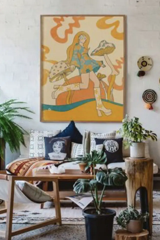 Et on commence avec une bonne dose de couleurs, de bonne humeur, d'amour et de LSD. On fait un bond dans le temps de quelques décennies à une époque culte: on va chez les hippies. Enfin, on s'inspire plus de cette époque pour décorer les murs. Messages de paix, couleurs flamboyantes, distorsions visuelles... Un choix audacieux mais parfait pour personnaliser en un clin d'oeil votre intérieur.