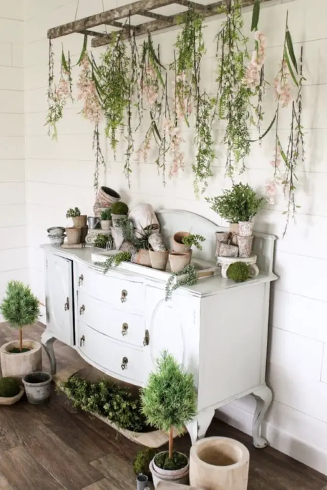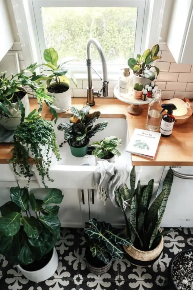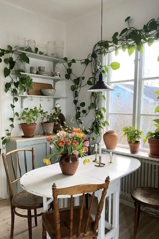 - Décorer la cuisine avec des plantes suspendues et des plantes grimpantes;