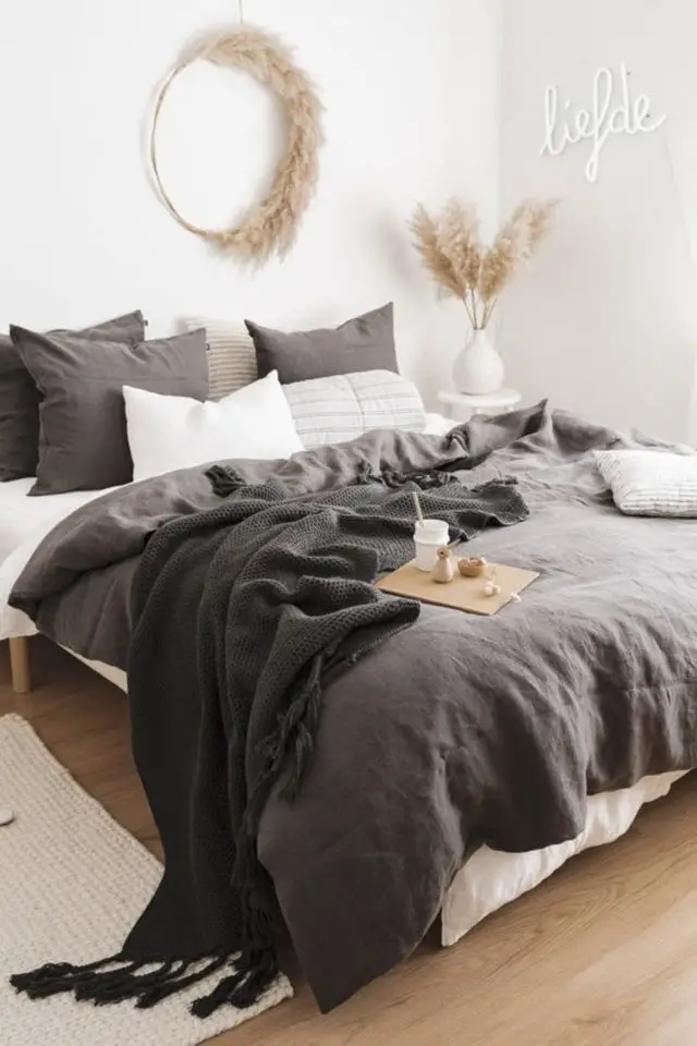 exemple decoration moderne chambre à coucher adulte coussin facile