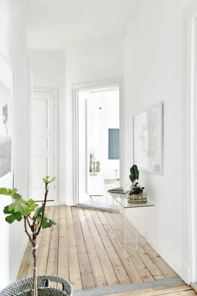 Je termine cette sélection avec l'entrée et le couloir. Le revêtement des espaces de passage est toujours à choisir avec soin. Il doit être résistant pour pouvoir supporter les passages fréquents. Il soit être pratique à entretenir. Evidemment, si vous vivez au milieu d'un champ, le parquet n'est pas forcément le meilleur choix quand il pleut et que vous avez de la boue sur les chaussures (et le carrelage sera probablement plus facile à vivre). Mais si vous vivez en ville ou même juste dans un appartement, le parquet peut s'avérer être un choix intéressant. Il est chaleureux, naturel. Certains modèles se nettoient très facilement. Ca doit être si agréable de rentrer chez soi et d'avoir du bois devant les yeux.