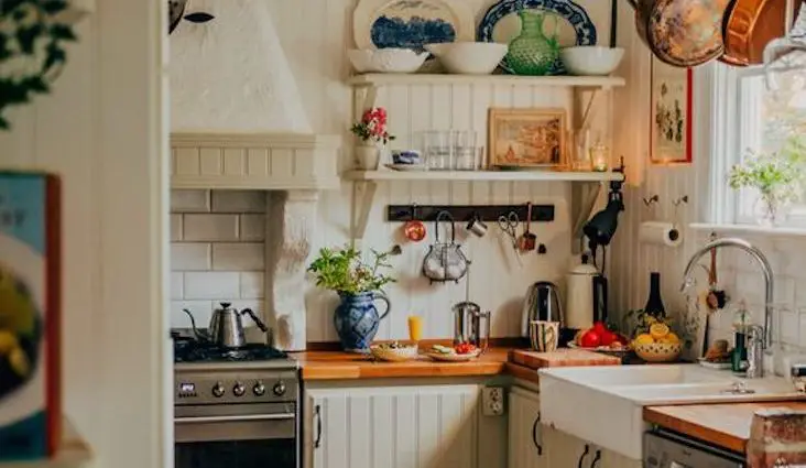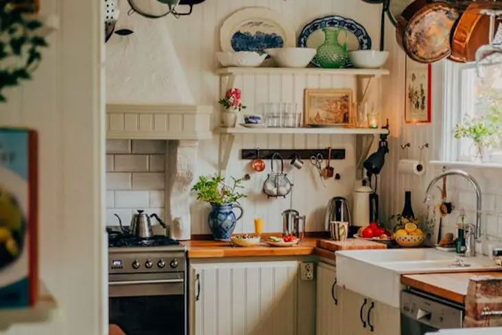 Quand j'ai préparé ma sélection d'images pour cet article, je me suis tournée vers les cuisines traditionnelles, un peu dans l'esprit farm house ou classique. C'est bizarre parce que ce n'est pas du tout mon style en général. J'aime les voir en photo mais je sais pas expérience que ce n'est pas ma tasse de thé du tout! Alors pourquoi? Il m'a fallu un moment pour comprendre... Je viens de commencer à regarder la série Julia qui revient sur le parcours de l'américaine Julia Child, animatrice culinaire à la télé dans les années 60 (si je ne dis pas de conneries) et autrice de livres de cuisines, notamment autour de la cuisine française. (Il y a quelques années, j'avais adoré le film Julie et Julia) Dans la série de nombreuses scènes se déroulent dans sa cuisine. L'organisation de cette pièce me fait juste rêver. Tout ce qui sert à cuisiner à soigneusement une place. C'est loin d'être un intérieur minimaliste mais ça doit être tellement pratique d'avoir tout sous la main. Du coup, dans cet ordre d'idées, je vous propose une série d'images où on a ce qui est essentiel sous la main pour préparer de bons petits plats!