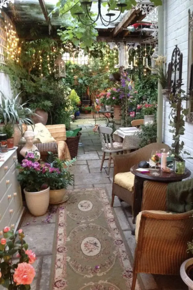 Mais vous pouvez jouez avec les jardinières de chaque côté (et donc les plantes à l'intérieur), les luminaires, les arbustes, le revêtement de sol, le mobilier (d'ailleurs, pour ce type d'espaces, vous pouvez piocher dans le mobilier pour balcon!)... Tout cela donnera de la personnalité à votre petit extérieur filant.