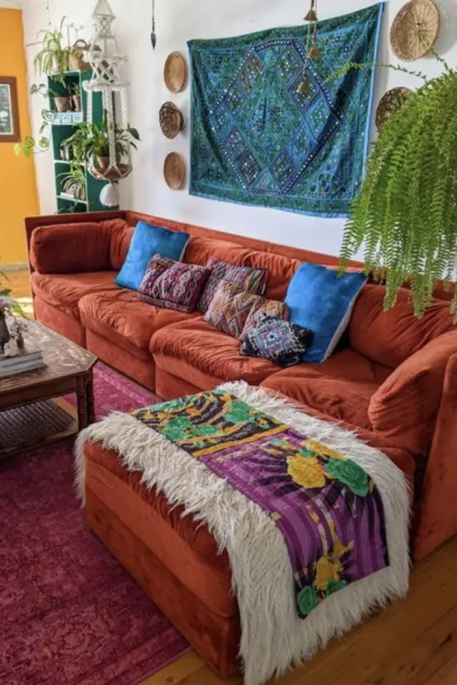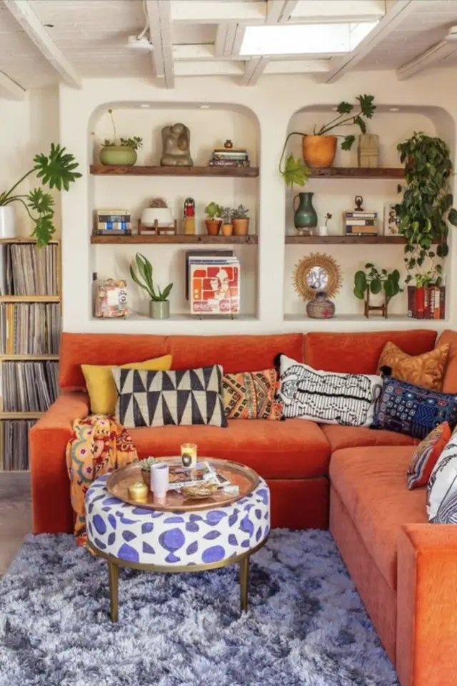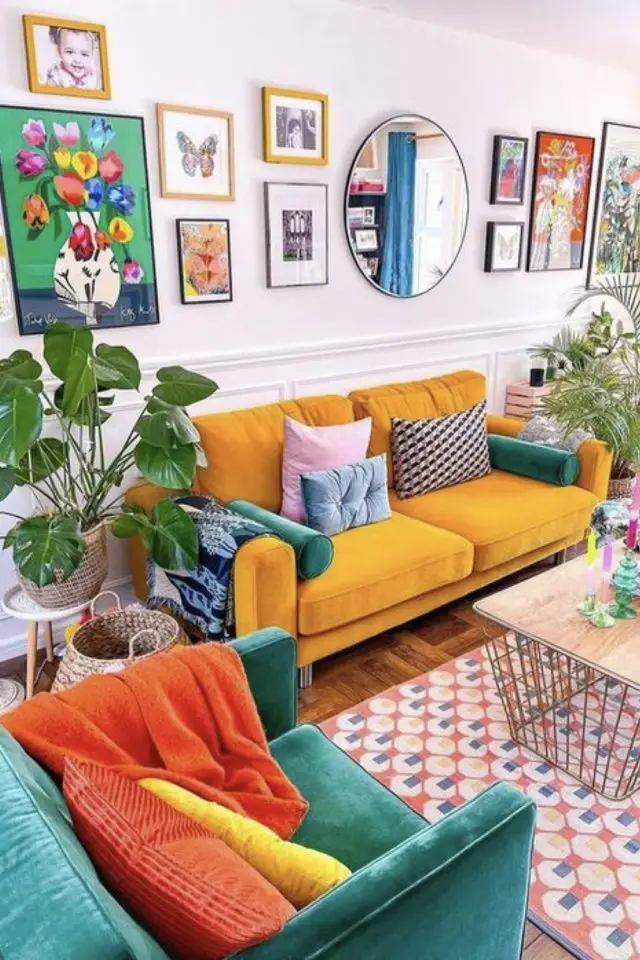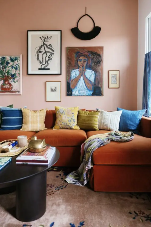 J'ai pu lire qu'en France, il y avait des vagues exceptionnelles de chaleur pour un mois de mai... Je vous passe tout le discours à propos du réchauffement climatique, toussa. Si vous me suivez ici ou sur Instagram, vous savez ce que j'en pense. Et ce n'est pas la question aujourd'hui. Tant qu'à faire, autant commencer la semaine de manière légère. La déco peut être cette légèreté. Et donc la chaleur me fait penser (entre autres) à la couleur. Quoi de mieux que la couleur pour avoir le sentiment d'être en été toute l'année. Elle met de bonne humeur. Elle égaye le moral même quand la météo est plus morose. On retrouve donc des couleur chaude comme l'ocre, la rouille / le terracotta, des nuances de roses mais aussi un contraste avec des couleurs plus froides comme le vert et le bleu. Ces salons me font penser aux intérieurs hyper colorés que je vous présente depuis quelques mois. Cela donne un côté pop assez agréable, je trouve. Pas vous?