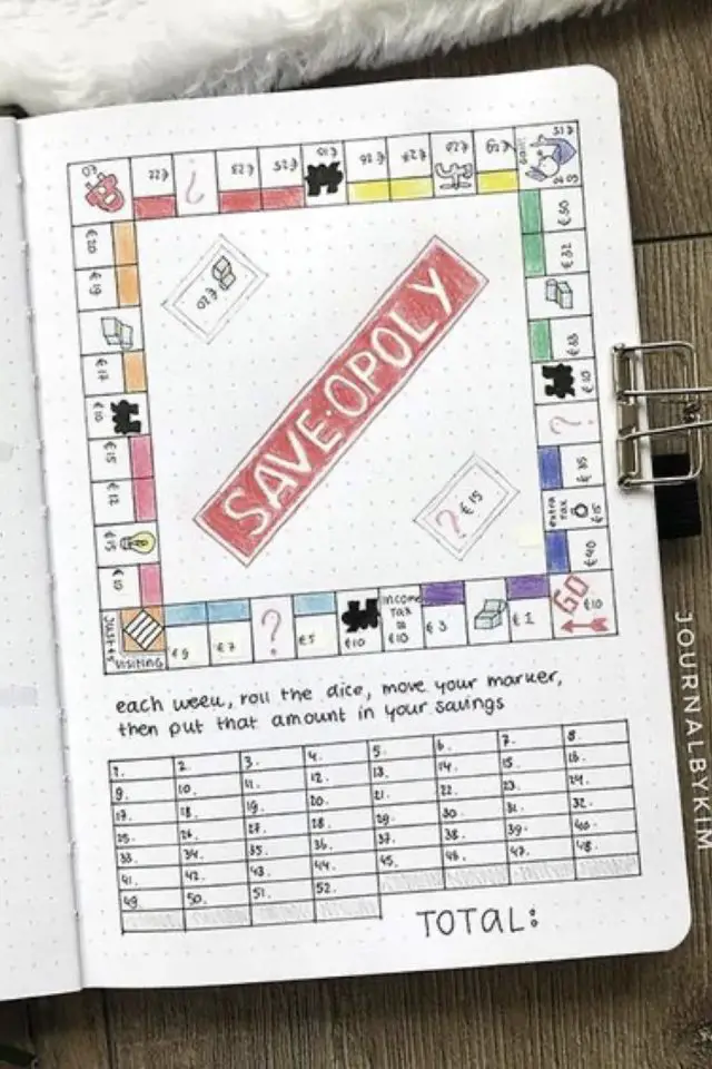 - Le monopoly est une idée ludique. Je l'aime bien parce qu'en vacances on a tendance à plus jouer aux jeux de société. C'est aussi une idée pour économiser dans ce cas là. Sur chaque case du jeu, il y a un montant à mettre de côté. Il suffit d'avoir un dé ou juste une bonne âme qui vous donnera un nombre!