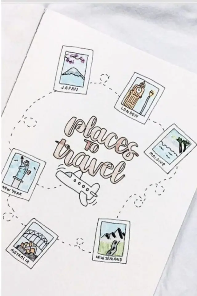 J'aime beaucoup préparer mes articles autour du Journaling. J'aime le côté créatif de cette activité que ce soit pour un bullet journal, un carnet de voyage, ou encore pourquoi pas, un journal intime. Pourquoi j'aime ça? Parce que ça me donne plein d'idées et surtout ça met une touche de créativité dans mon quotidien sur le blog. Comme je l'expliquais ces dernières semaines, je ne tiens plus de bujo depuis une paire d'années. J'ai d'autres outils, notamment numériques, pour avancer dans mon boulot. En revanche, j'ai commencé il y a quelques mois un journal de voyage. Après plus de 5 ans de nomadisme et à voyager en Asie, dans le Caucase et au Proche-Orient... Il était peut-être temps de m'y mettre. Néanmoins, je sais que parmi mes lectrices (et lecteurs), certain(e)s cherchent un moyen d'exprimer leur créativité, d'autres cherchent à être mieux organisé(e)s. Et le bullet journal peut être une solution. Chaque mois, je vous propose des idées pour décorer votre Bullet Journal. Et depuis le mois passé, j'ai eu envie d'approfondir une thématique bien spécifique. Cette fois, comme nous sommes en pleine période de vacances scolaire, j'ai eu envie de vous perler vacances. Cela rejoint en partie ma série d'articles sur les carnets de voyages. D'ailleurs, je vous invite à les consulter, vous devriez y trouver des idées aussi pour personnaliser votre journal. Dans cet article, vous trouverez: un tas d'idées pour illustrer autour du voyage, on va revoir les symboles que vous pouvez utiliser et décliner pour ces mois d'été. Je vous propose aussi des listes pratiques pour préparer vos valises ou juste ne pas oublier un endroit que vous aimeriez visiter. Enfin, plus étonnant, mais j'aime cette idée: des trackers pour économiser tout au long de l'année pour les vacances... Alors que dans mon dernier article, on avait aborder la thématique de la nature et qu'on était resté sur des idées générales, cette fois le bujo se veut aussi bien déco que pratique, histoire de profiter pleinement des vos vacances.
