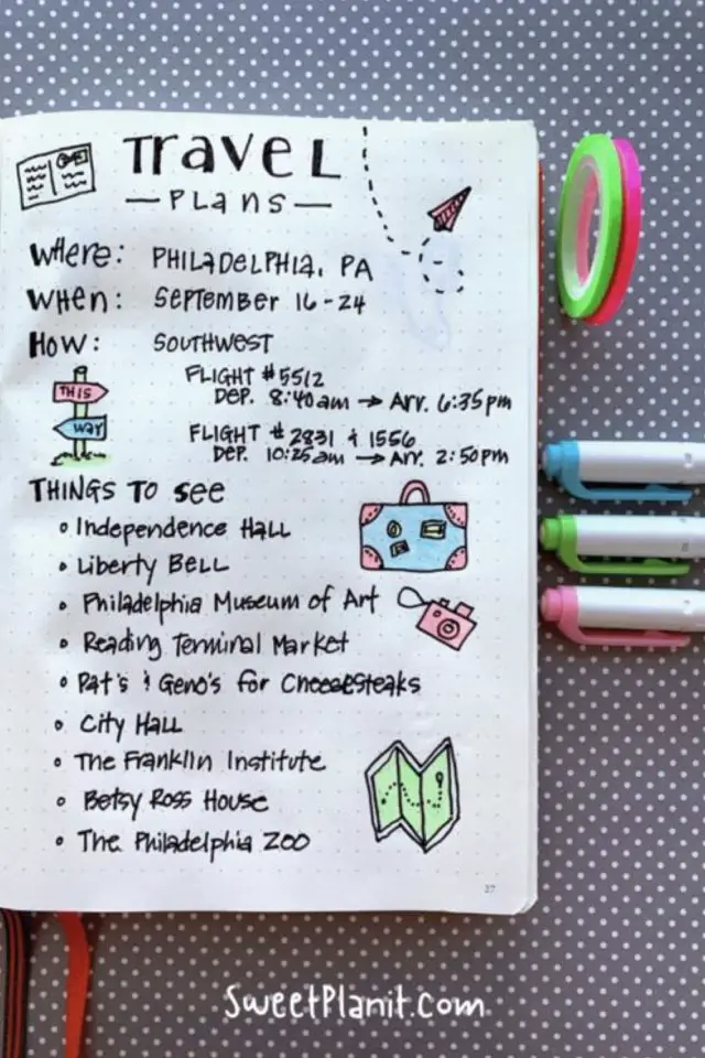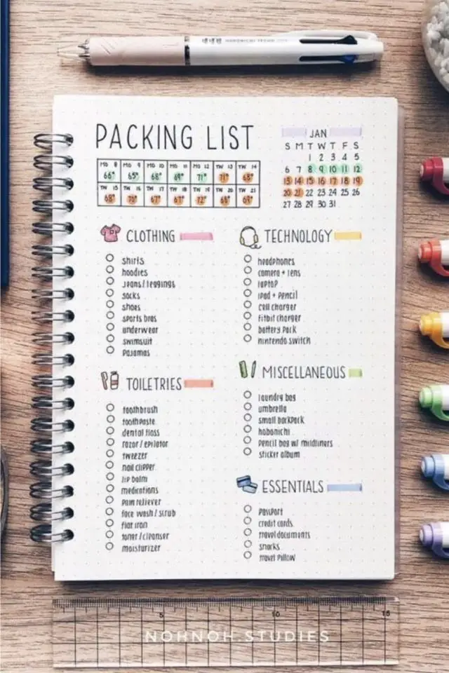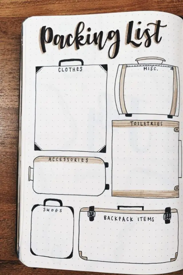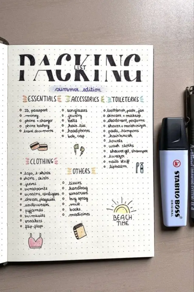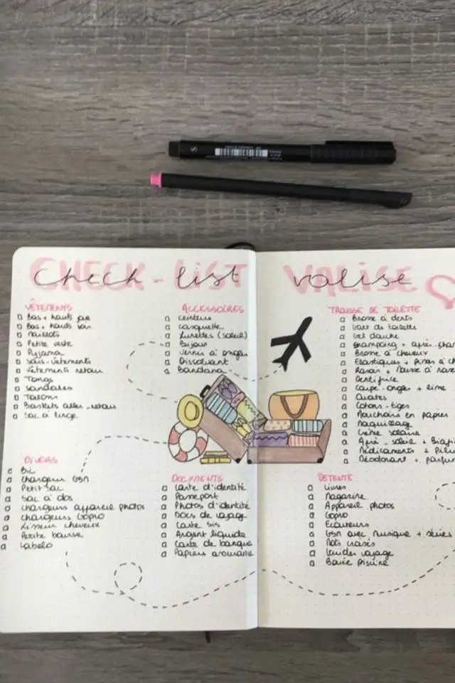 01 • Packing list & lieux à visiter - Bullet Journal pour les vacances