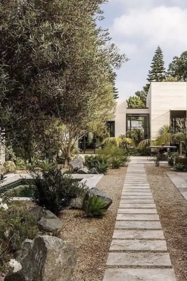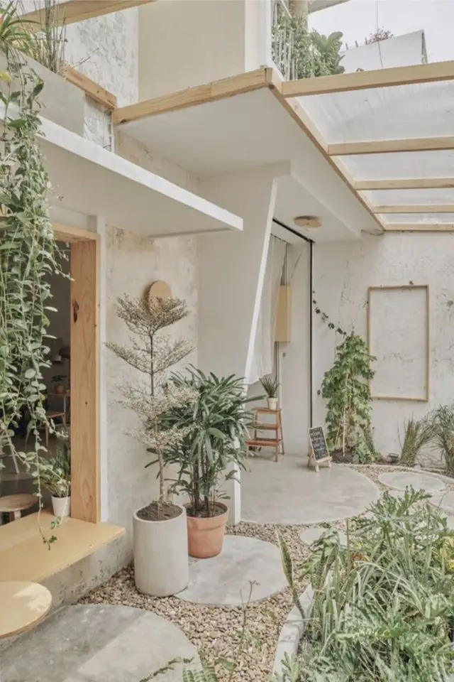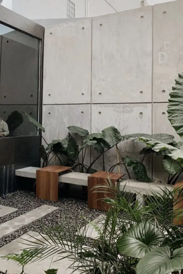 Il y a quelques semaines dans un de mes weekly inspirations, j'avais partagé quelques photos où le béton et le gravier étaient des composantes essentielles de l'aménagement extérieur; Je ne pensais pas que ce type d'esthétique allait autant plaire. Et je me suis donc dit que ça valait le coup de creuser la question un peu plus. Personnellement, le béton me plait, en intérieur comme en extérieur. Il a un côté brut qui me parle beaucoup (brut peut-être à l'image de ma personnalité). Il ne s'embarrasse pas de ce qui n'est pas utile. J'aime aussi le sentiment épuré qu'il offre à l'espace où il se trouve, ici en l'occurence, le jardin. J'ai bien conscience que cet article ne vas pas plaire à tout le monde. Que pour certains le jardin est fait de pelouse, la terrasse d'un revêtement plus chaleureux comme le bois. Perso, en étant en Asie, voir du béton partout en extérieur ne me choque plus, c'est plus évident pour éviter les bestioles comme les scorpions ou les scolopendres à proximité de la maison!