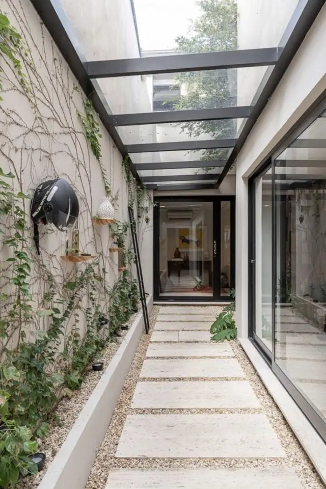 Une allée faite de dalles de béton