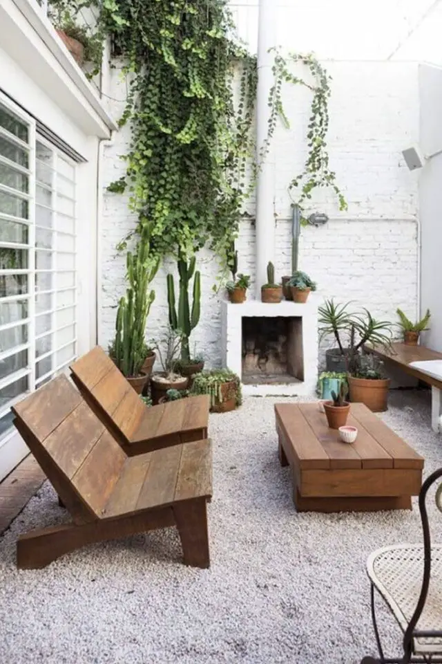 Si vous trouvez que l'ensemble béton + gravier est un peu trop froid, un peu trop design pas d'inquiétudes. Le bois est votre allié. A l'instar de l'intérieur, le bois en extérieur est un élément chaleureux sur lequel vous pouvez compter. Salon de jardin, banc, pergola... le tout en bois apporteront une touche plus accessible, plus cosy à votre extérieur.