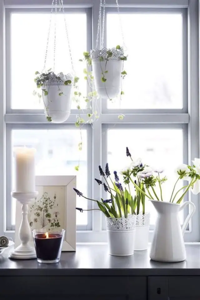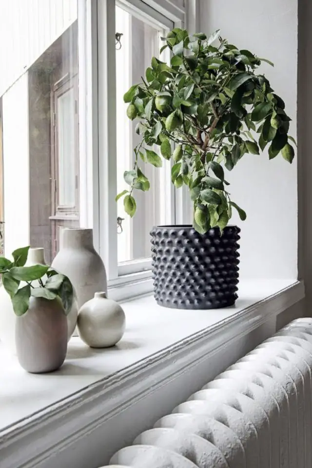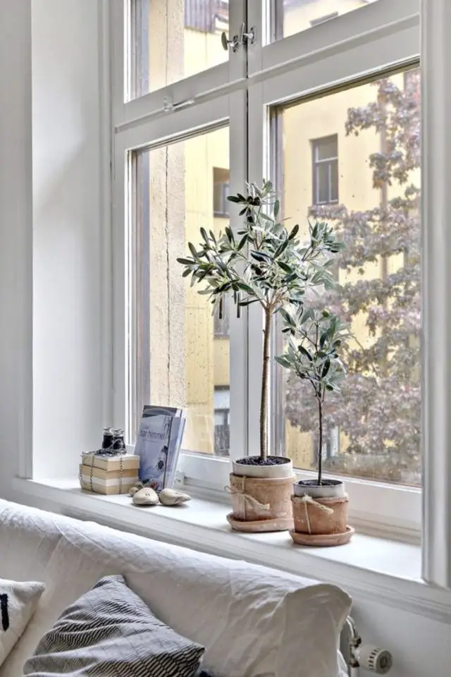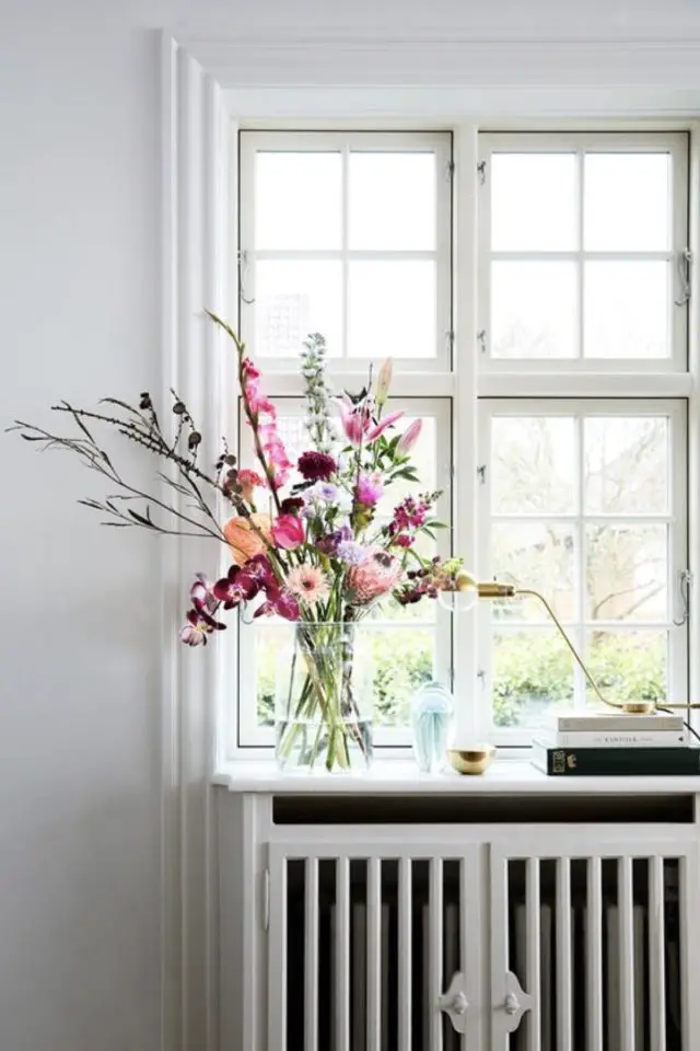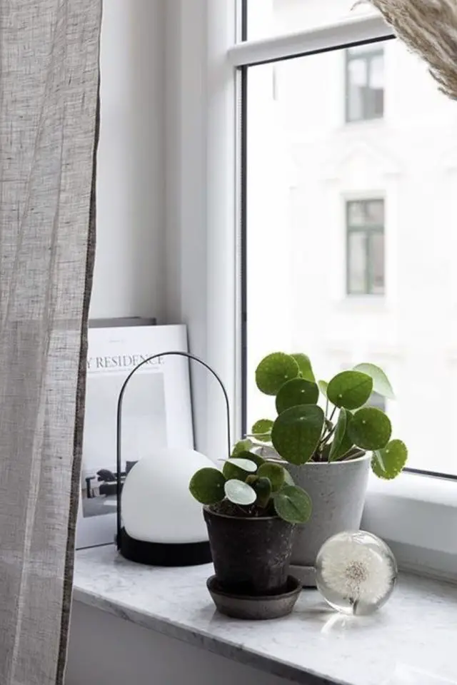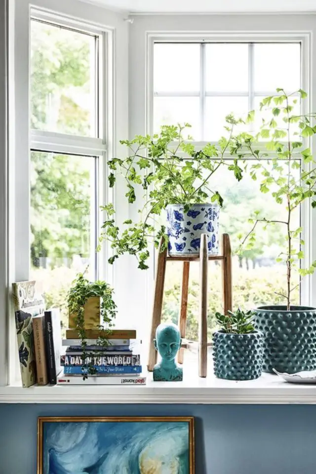 01 • Décorer le rebord de fenêtre avec des fleurs et des plantes