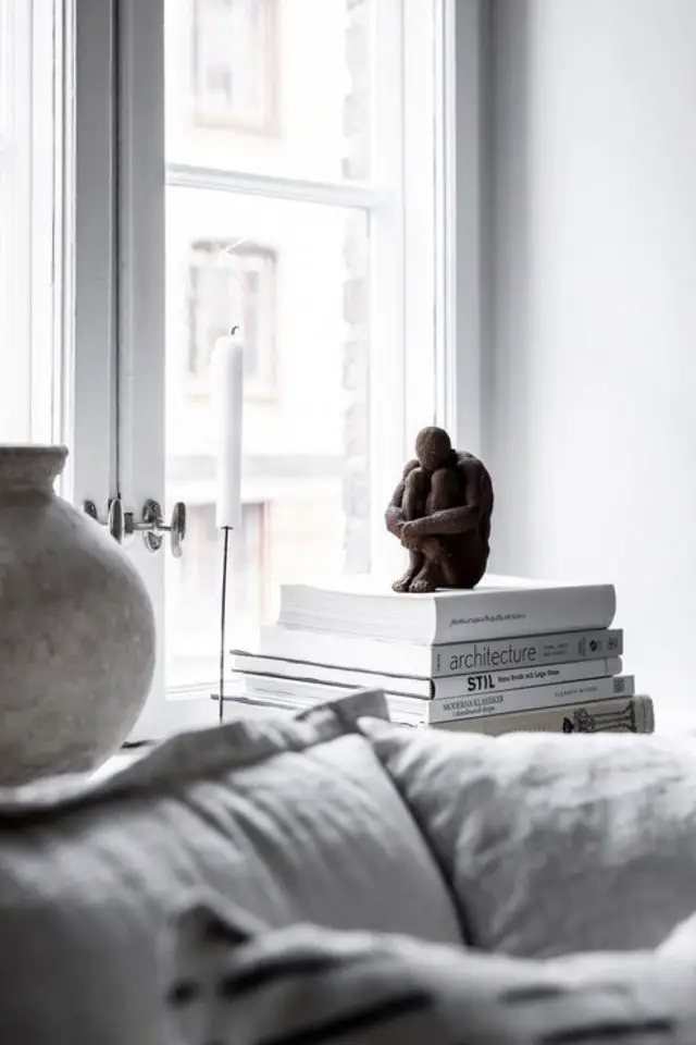 Pour décorer l'appui de fenêtre il y a toute la famille des bustes et statuettes. J'en parle peu sur le blog tout simplement parce que ce n'est pas tout à fait mon genre de décoration. J'aime ce qui est simple, j'aime ce qui ne me demande pas de faire les poussières tous les jours. Pourtant, ces objets déco sont parfaits pour donner beaucoup de personnalité voire d'élégance à une surface plane. Cela est valable pour le dessus du buffet tout comme l'intérieur de la fenêtre. On peut alors facilement accentuer la décoration déjà présente dans la pièce. La statuette peut renvoyer à un style antique chic, un style bohème qui fait voyager ou pourquoi pas quelque chose de plus organique et abstrait.