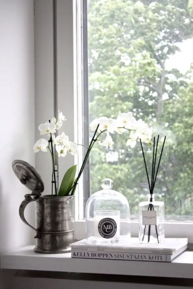 - 01 • Décorer le rebord de fenêtre avec des fleurs et des plantes