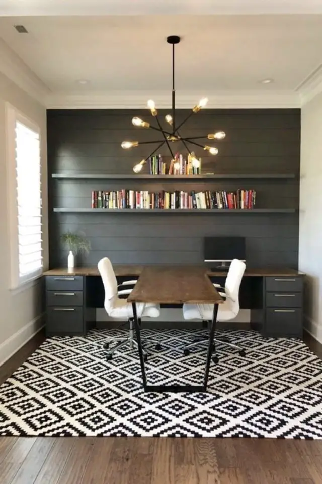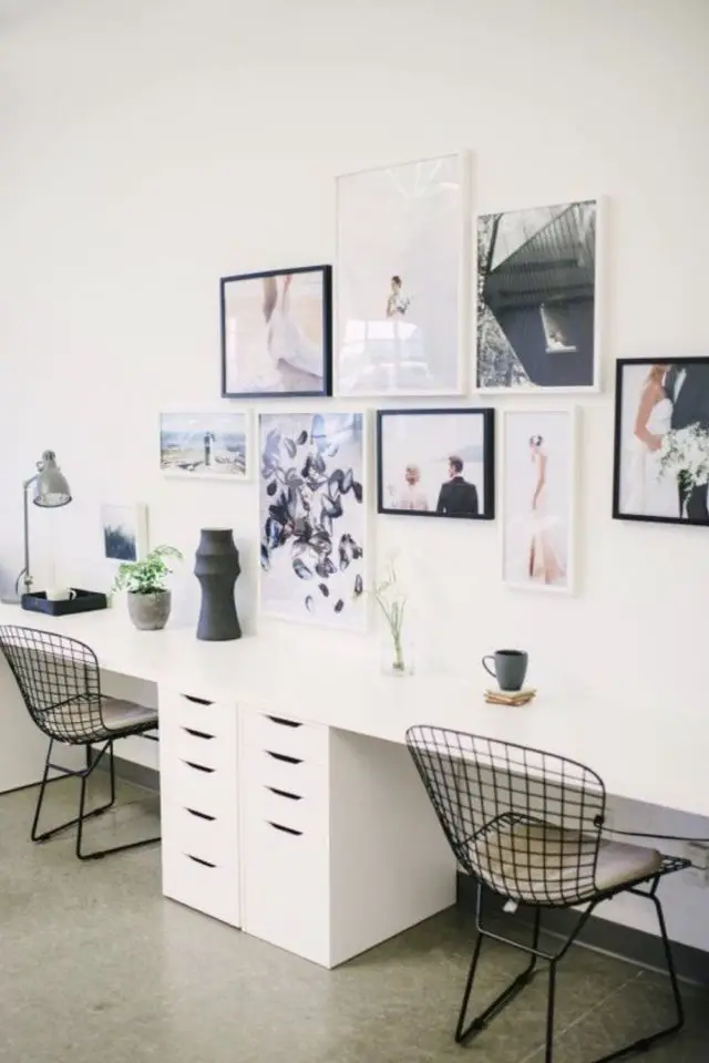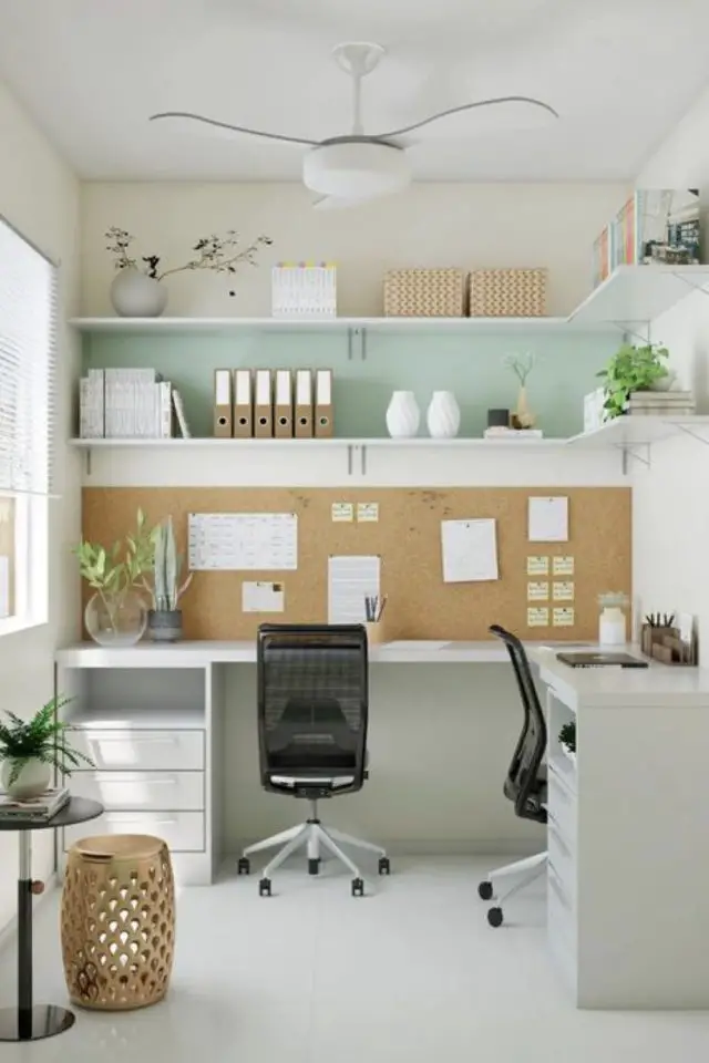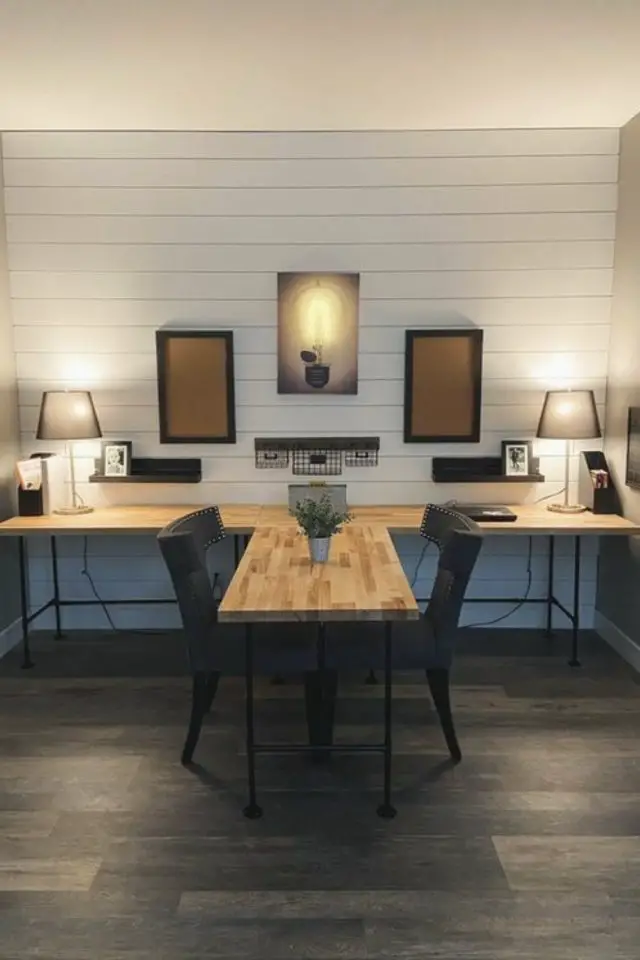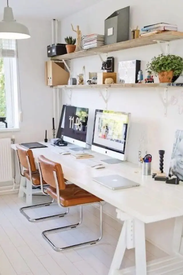 Un petit bureau dans un salon est facile à intégrer, la plupart du temps il suffit de pousser quelques meubles pour faire de la place. C'est différent quand il est question de double bureaux. Il faut un peu plus d'espace. Certaines implantations demandent même dans l'idéal une pièce dédiée.