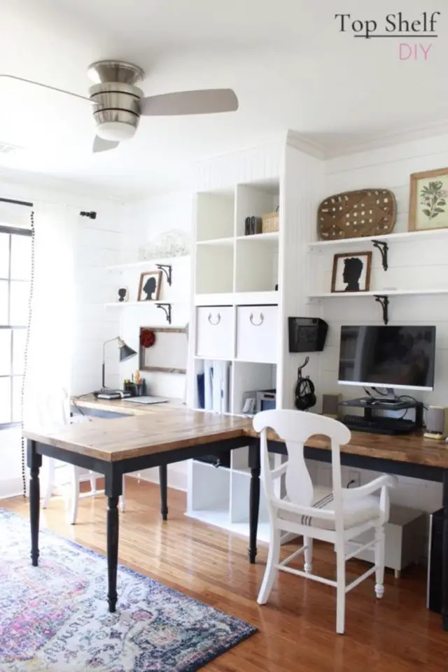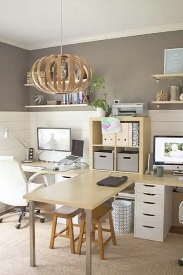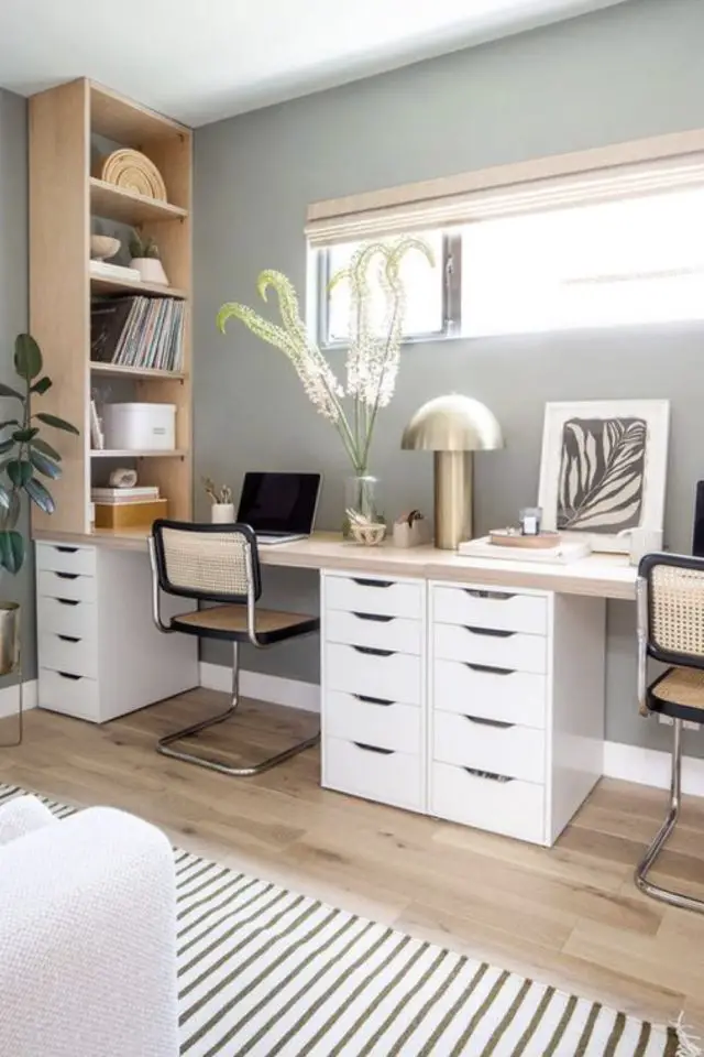 Dans de nombreux articles autour du bureau je vous parle de rangements. L'espace de travail est primordial, c'est la pièce centrale de vitre espace. Néanmoins, si vous n'avez pas au moins un minimum de meubles pour ranger, il sera difficile de créer des conditions optimales pour travailler. Les doubles bureaux offrent deux possibilités de rangement qu'on pourrait qualifier d'évidentes.