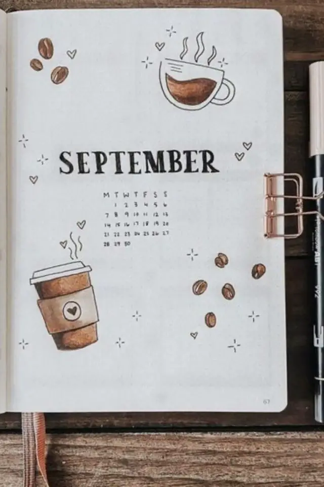 Si vous suivez le blog vous savez que je parle régulièrement de journaling. Chaque fin de mois je propose quelques idées pour illustrer la page de garde du mois suivant et cette fois, il est question du mois de septembre. Comme dans cet article, je prends bien garde à ne pas parler de la rentrée, je n'allais pas vous proposer des dessins de bureau, cartable et autre fournitures scolaires (si cette thématique vous intéresse, j'en parle ici). Je vous propose donc des alternatives à la thématique de la rentrée des classes. On a des fleurs et des plantes comme pour faire durer l'été un peu plus longtemps. On peut aussi s'inspirer de la fatigue ressentie les premiers temps avec la reprise et l'addiction au café que cela entraine. Enfin, si vous aimez comme moi l'automne, c'est aussi un thème qui peut être développer pour le mois prochain (plus d'idées sur le thème de la nature ici).