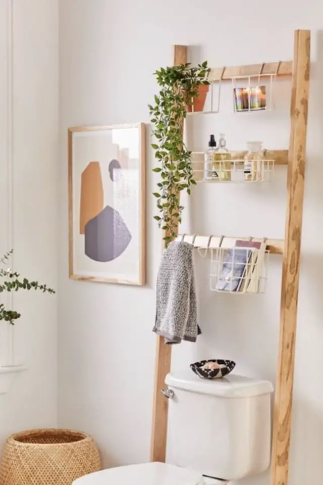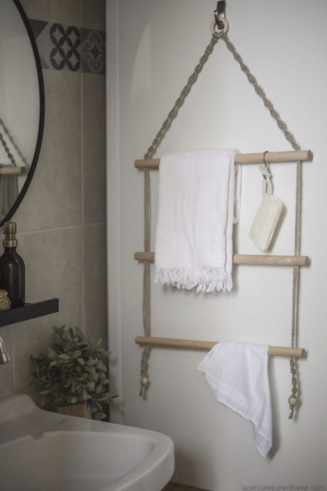 Je termine cet article que je n'imaginais pas si long avec la salle de bain. Ici, je crois que le meilleur conseil que je puisse vous donner est de réfléchir à la solution du moins mais mieux. On met moins de meubles ou de déco mais on choisit mieux ce qui trouvera sa place dans cette micro pièce. N'hésitez pas à opter pour du bois que ce soit pour les meubles d'appoint ou les accessoires. Ils apporteront un côté naturel et chaleureux à la pièce. J'aime aussi beaucoup les meubles d'appoint. Pas besoin de chercher compliquer. Je sais que trop bien que dans une salle de bain, notamment en location, il n'y a pas assez de rangement. Une petite étagère, un banc, une desserte... Tout ceci devrait vous aider au quotidien à créer un espace cosy et déco. Si vous avez une âme créative, vous pouvez aussi créer un porte serviette en macramé! Effet déco garanti!