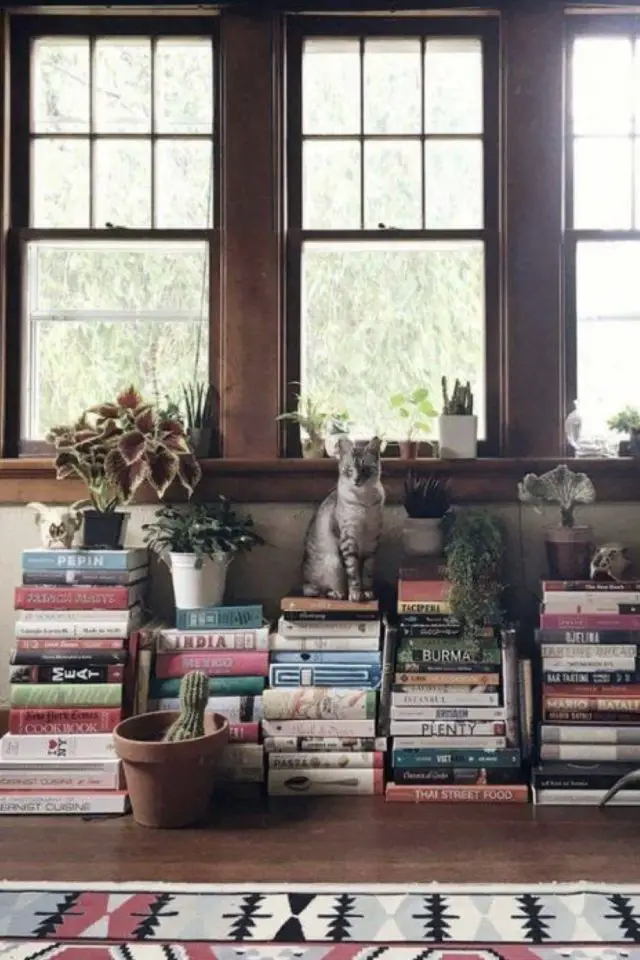 Ayant été étudiante en lettres, les bouquins avaient une part importante dans mon quotidien. Même si une partie venait de la bibliothèque universitaire, j'avais quand même une certaine collection de bouquins à moi et ils m'ont suivi jusqu'à ce que je change de vie il y a 6 ans. Même si j'adore lire, j'ai conscience que c'est une passion / activité qui peut être encombrante notamment dans un appartement de taille réduite. Comme vous pourrez le voir juste en dessous avec mes images d'inspirations, il y a des solutions pour ranger les livres sans trop perdre de place. La solution la moins cher c'est d'investir les rebords de fenêtre pour y déposer quelques bouquins. On peut aussi installer des étagères murales pour créer une bibliothèque. Attention tout de même à choisir les bonnes chevilles et installer suffisamment d'équerres pour que ça ne se casse pas la figure. Pour ne pas se sentir débordé(e) par l'accumulation de livres, regroupez les si possible à un seul endroit. Cela évitera de créer un espace qui semble brouillon.