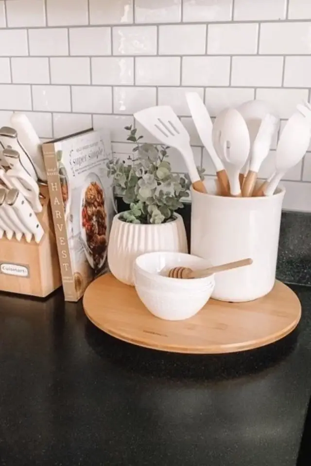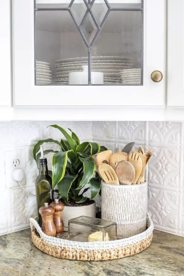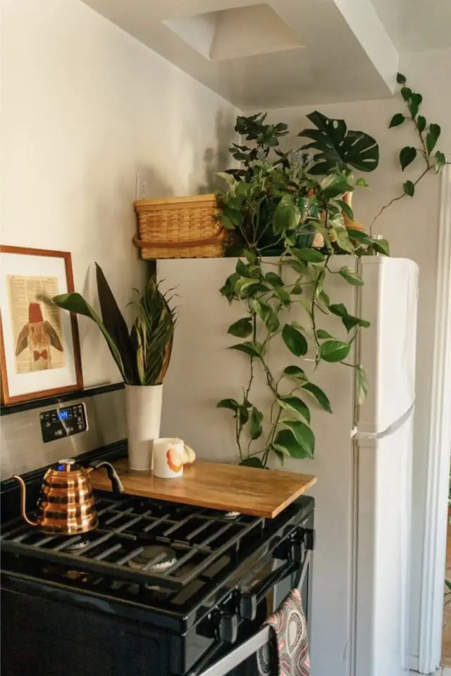 En plus des plantes aromatiques ou des plantes suspendues, on peut opter pour une plante à poser pour décorer la cuisine. Voici quelques idées: