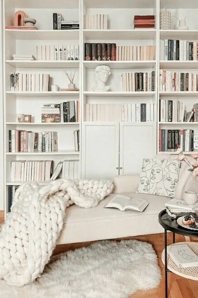 J'espère que vous avez passé un bon weekend et que vous n'êtes encore pas trop fatigué(e) avec la rentrée et le rythme métro - boulot - dodo. Comme chaque nouvelle semaine, je vous propose une nouvelle dose d'inspirations pour un quotidien déco. Ce lundi, il est question d'associer tasseaux de bois et étagères murales pour une déco chaleureuse et moderne. On va regarder de plus près les chambres parentales dans un style cottage pour une ambiance cosy toute l'année. Chose rare, dans la suite de cet article, je vous propose les références pour acheter facilement du carrelage écaille afin de décorer la salle de bain. Mais avant cela, on va s'intéresser aux bibliothèques blanches, à la fois discrètes & pratiques. Je vous souhaite une bonne lecture et surtout une bonne semaine!