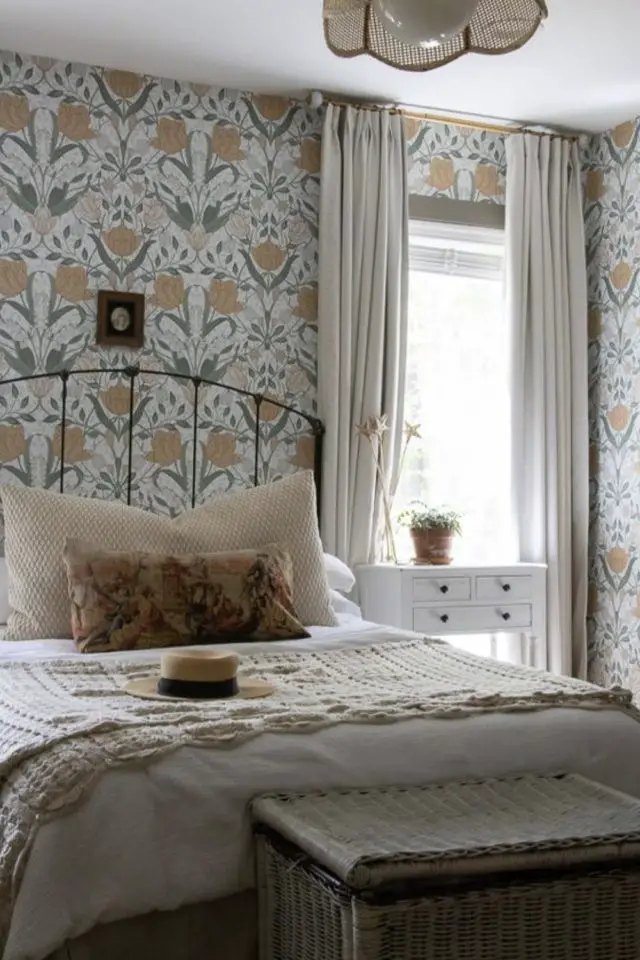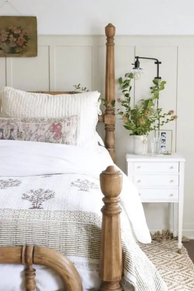 Vu que la rentrée est passée, c'est l'occasion de de penser à créer un cadre plus cosy à la maison pour passer l'automne et l'hiver de manière confortable. C'est peut-être l'occasion pour vous de changer la décoration de votre chambre à coucher. Le style Hygge est très connoté hiver même s'il est hyper cosy. Si vous cherchez quelque chose de plus adapté à chaque saison, il y a le style cottage qui offrira un côté comfy et charmant à votre espace sommeil. Lit vintage, soubassement en lambris peint, papier peint floral, des doubles rideaux de couleurs / textiles naturels... vous aideront pour créer un cadre hors du temps, agréable, douillet en toutes saisons.