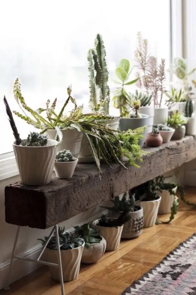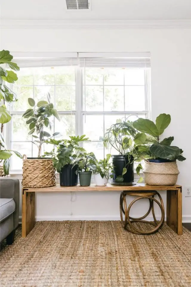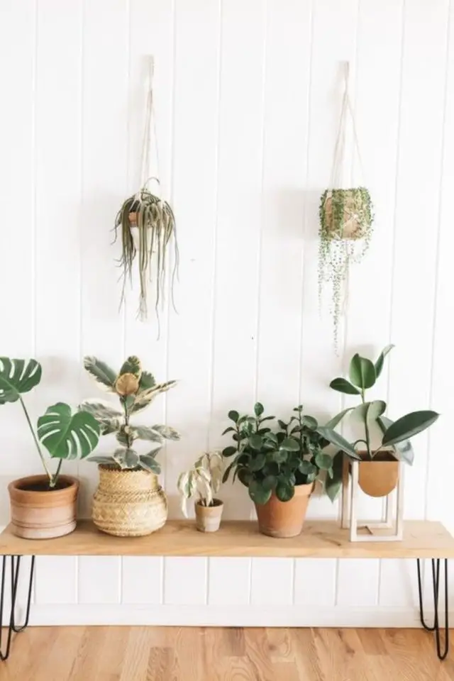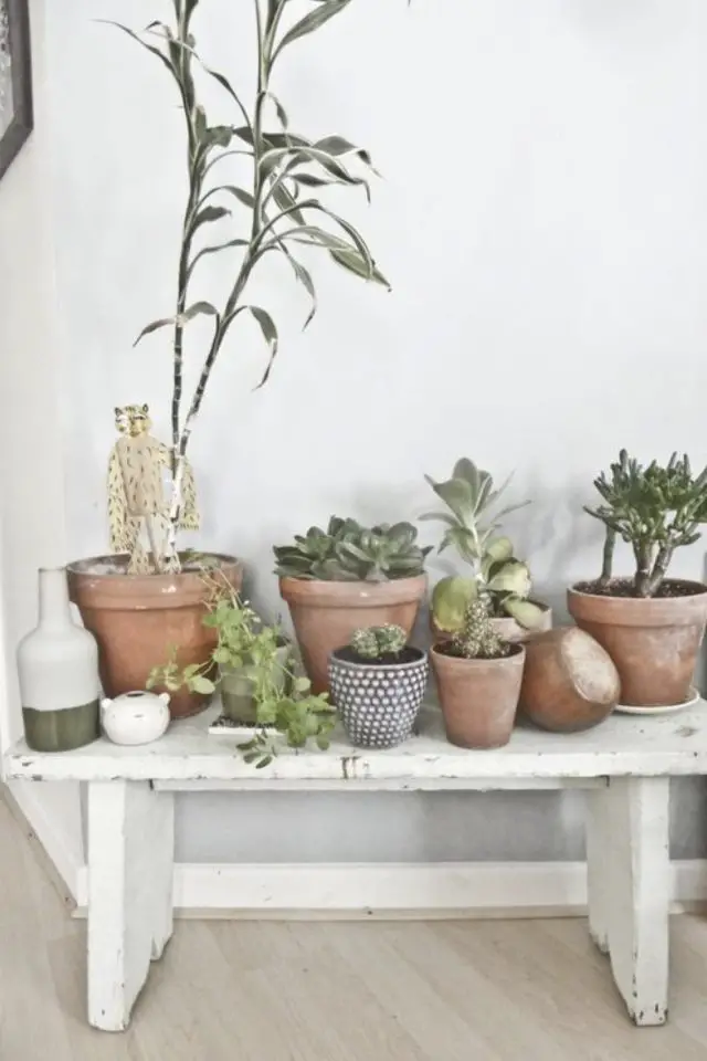 Le retour des plantes vertes... thématique que j'affectionne et que j'avais légèrement laissé de côté au profit du jardin et du balcon pendant l'été. Comme il ne devrait pas tarder à faire moche en France, je me suis dit qu'il était temps de vous reparler des plantes et vous donner quelques idées pour les mettre en valeur dans votre Home Sweet Home, notamment pour leur donner un peu de hauteur posées sur un banc. Ce qui me plait aussi c'est que c'est facile à mettre en place. Pas besoin de sortir la caisse à outils.