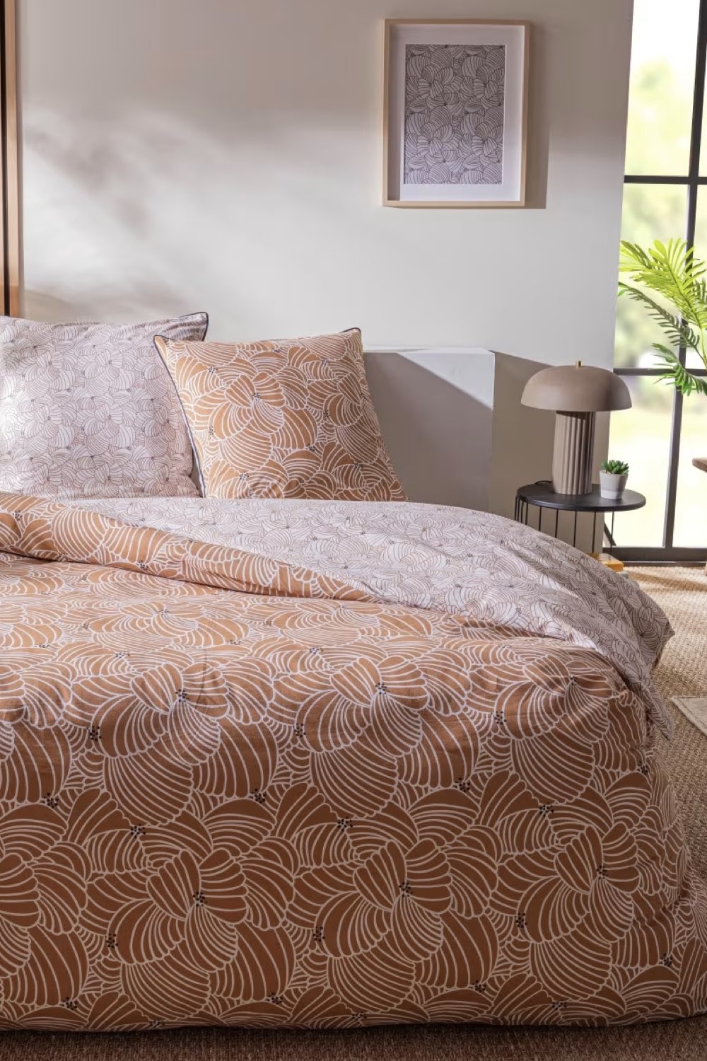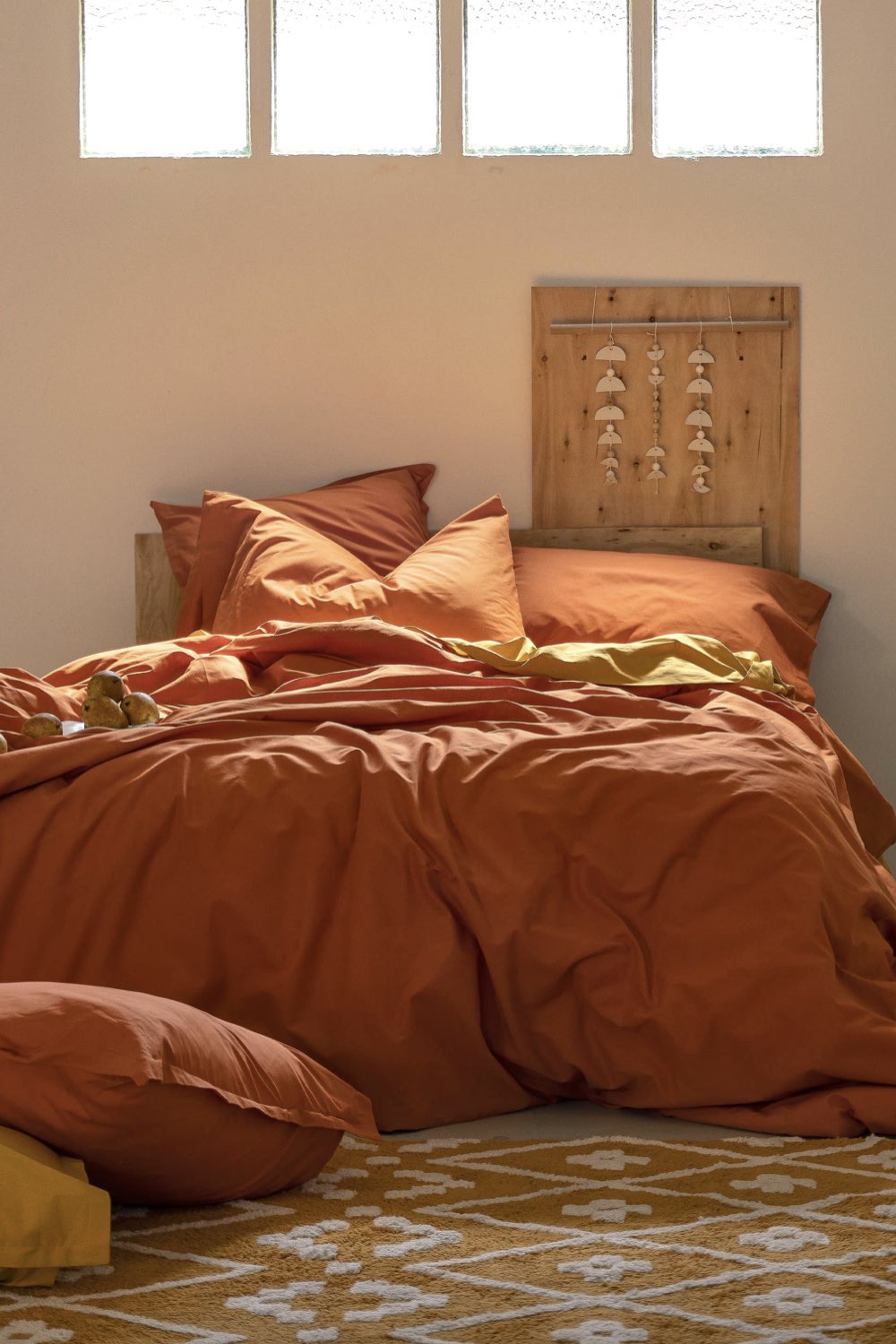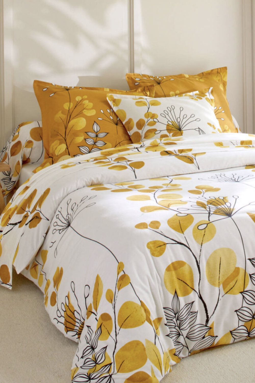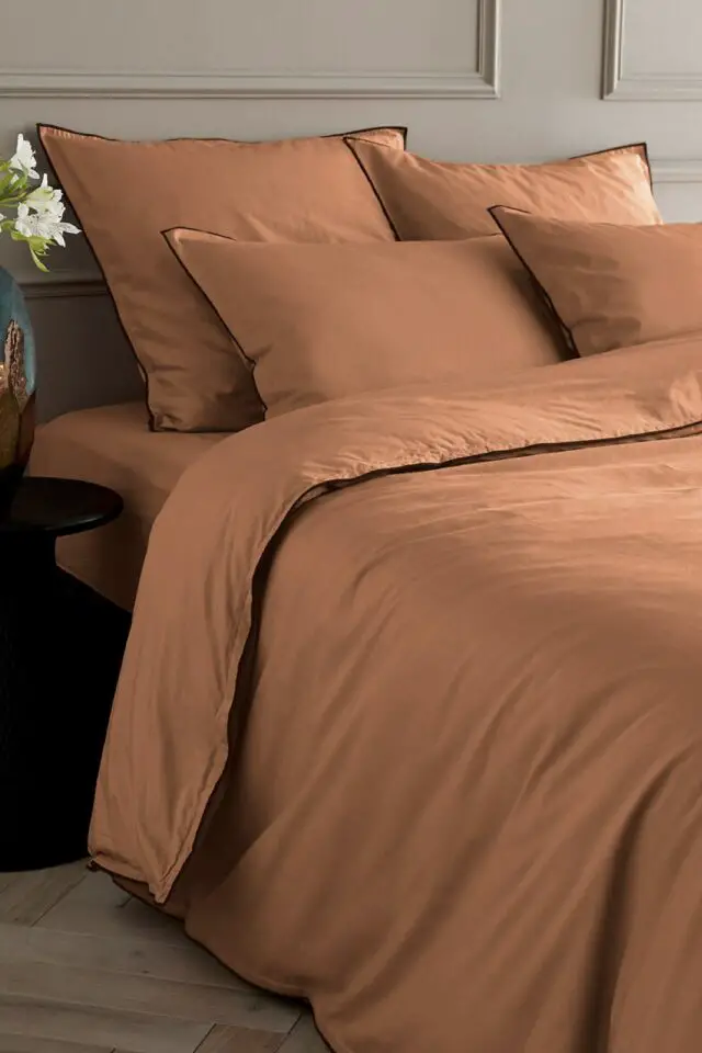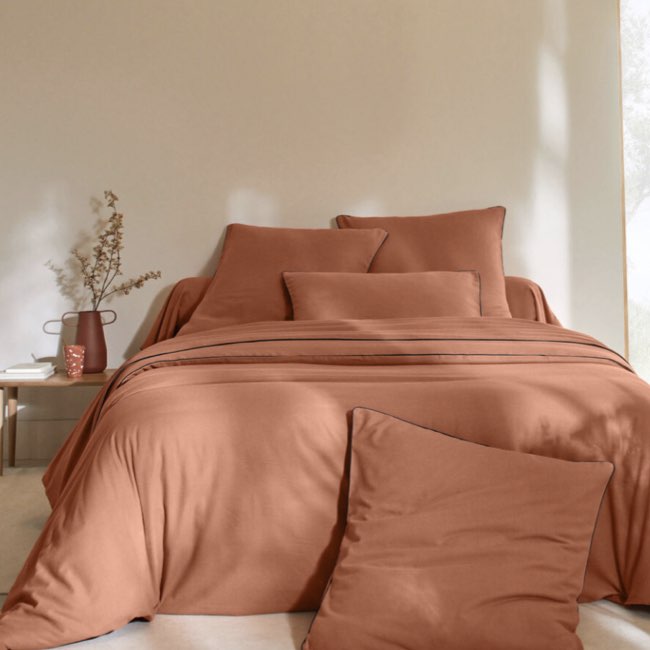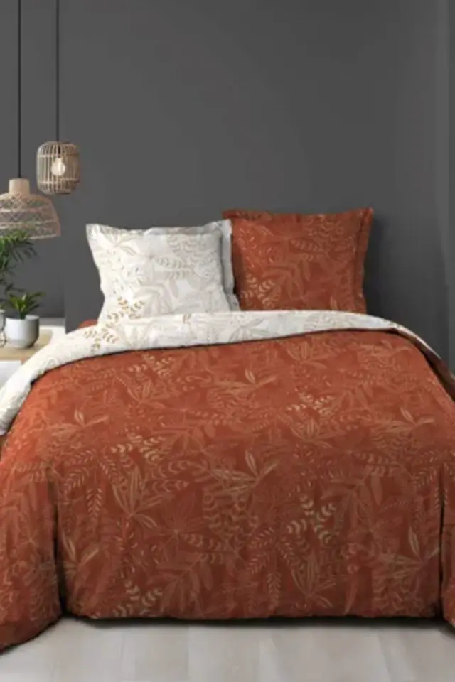 L'automne est en train de s'installer confortablement par chez vous. Il n'est pas encore temps de sortir le linge de lit en flanelle mais vous devez peut-être sentir la fraîcheur prendre ses aises dans la chambre. Aujourd'hui, on va regarder comment réchauffer l'atmosphère grâce au linge de lit. Il ne faut pas sous-estimer le pouvoir décoratif des textiles dans votre chambre notamment le linge de lit. Aujourd'hui, je vous propose une sélection de housses de couettes et de parures aux couleurs automnales.
