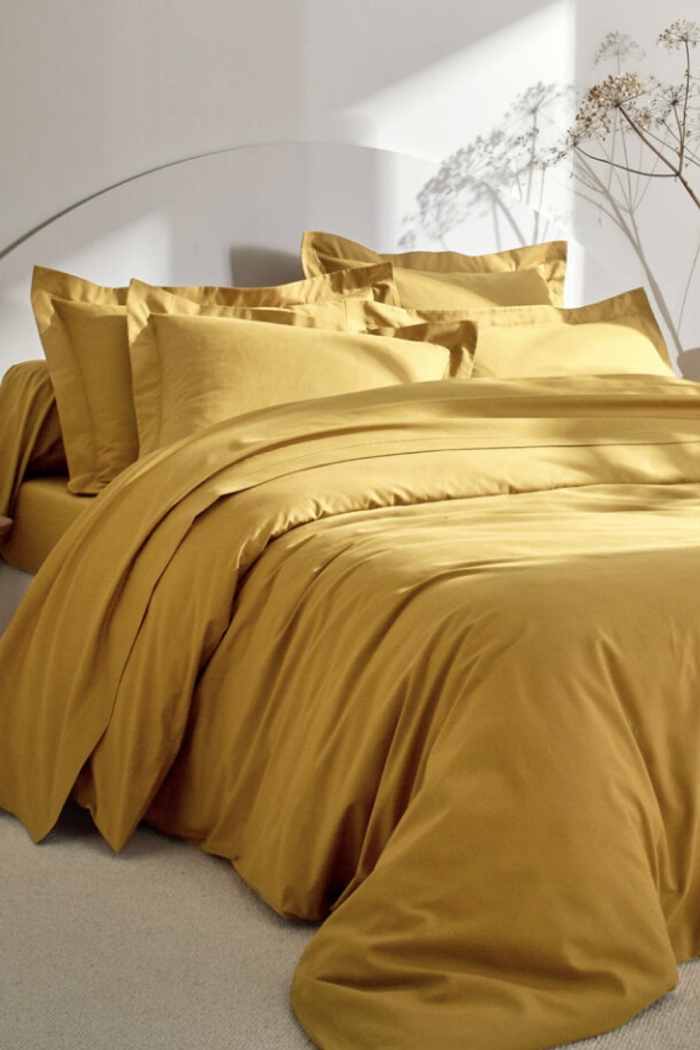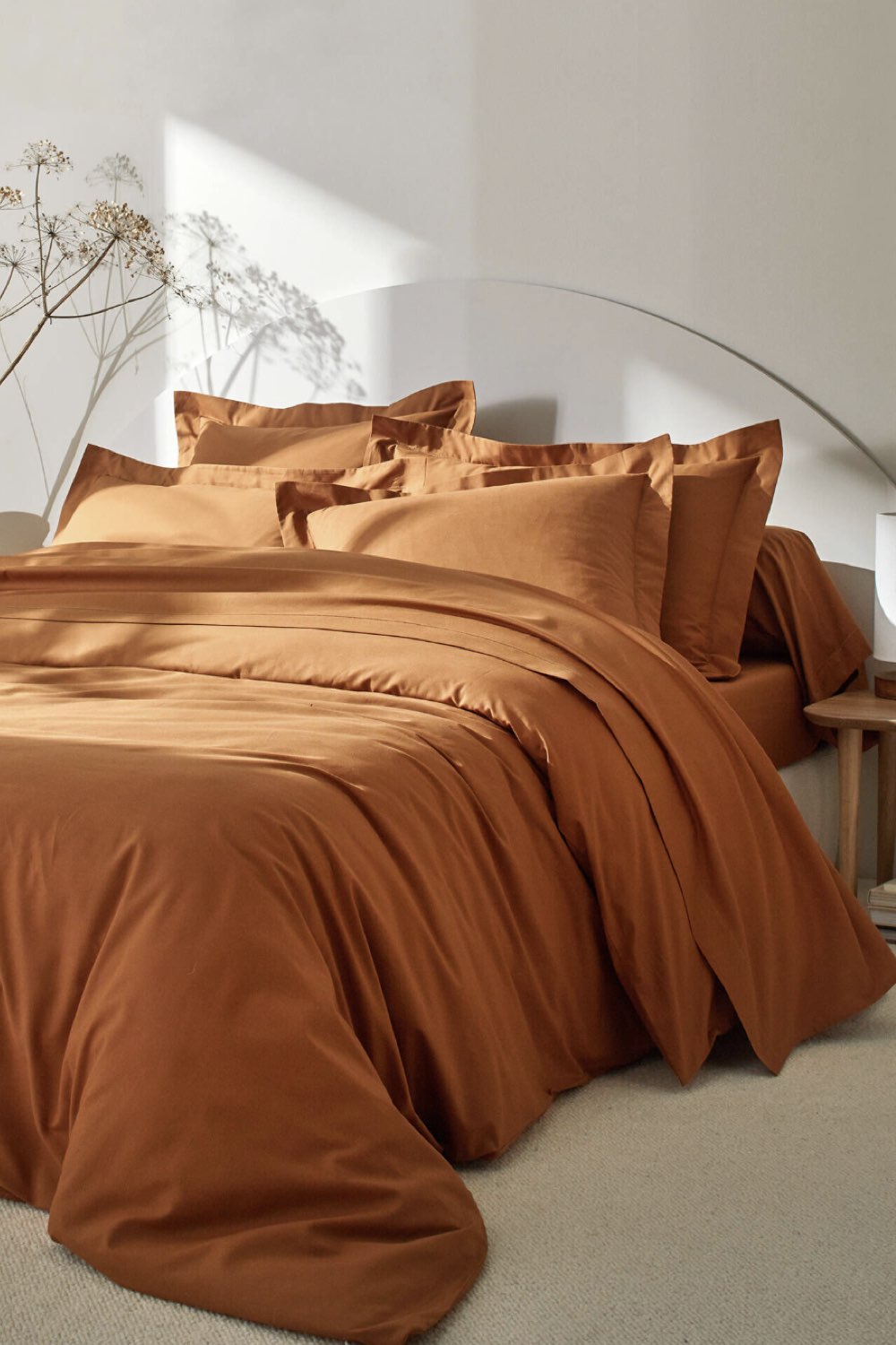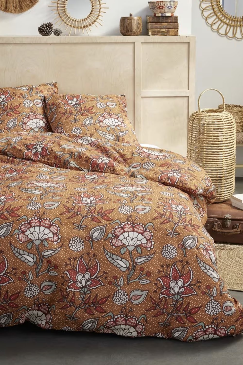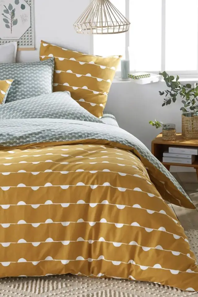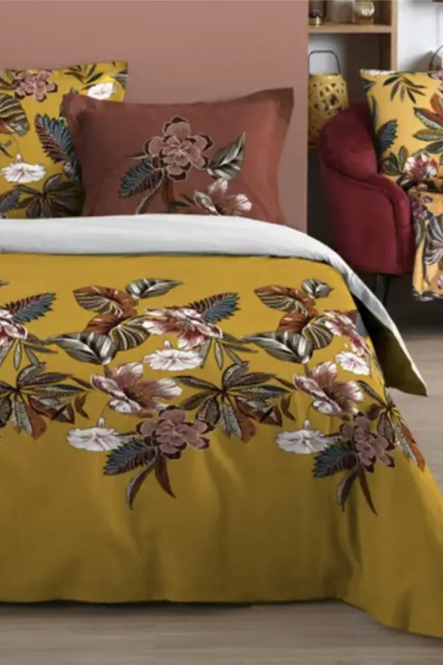 L'automne est en train de s'installer confortablement par chez vous. Il n'est pas encore temps de sortir le linge de lit en flanelle mais vous devez peut-être sentir la fraîcheur prendre ses aises dans la chambre. Aujourd'hui, on va regarder comment réchauffer l'atmosphère grâce au linge de lit. Il ne faut pas sous-estimer le pouvoir décoratif des textiles dans votre chambre notamment le linge de lit. Aujourd'hui, je vous propose une sélection de housses de couettes et de parures aux couleurs automnales.