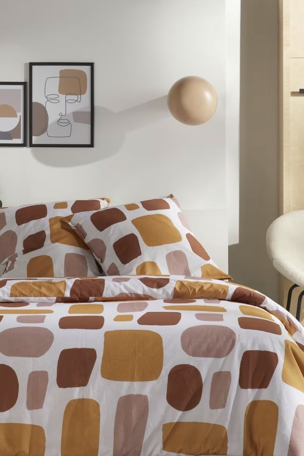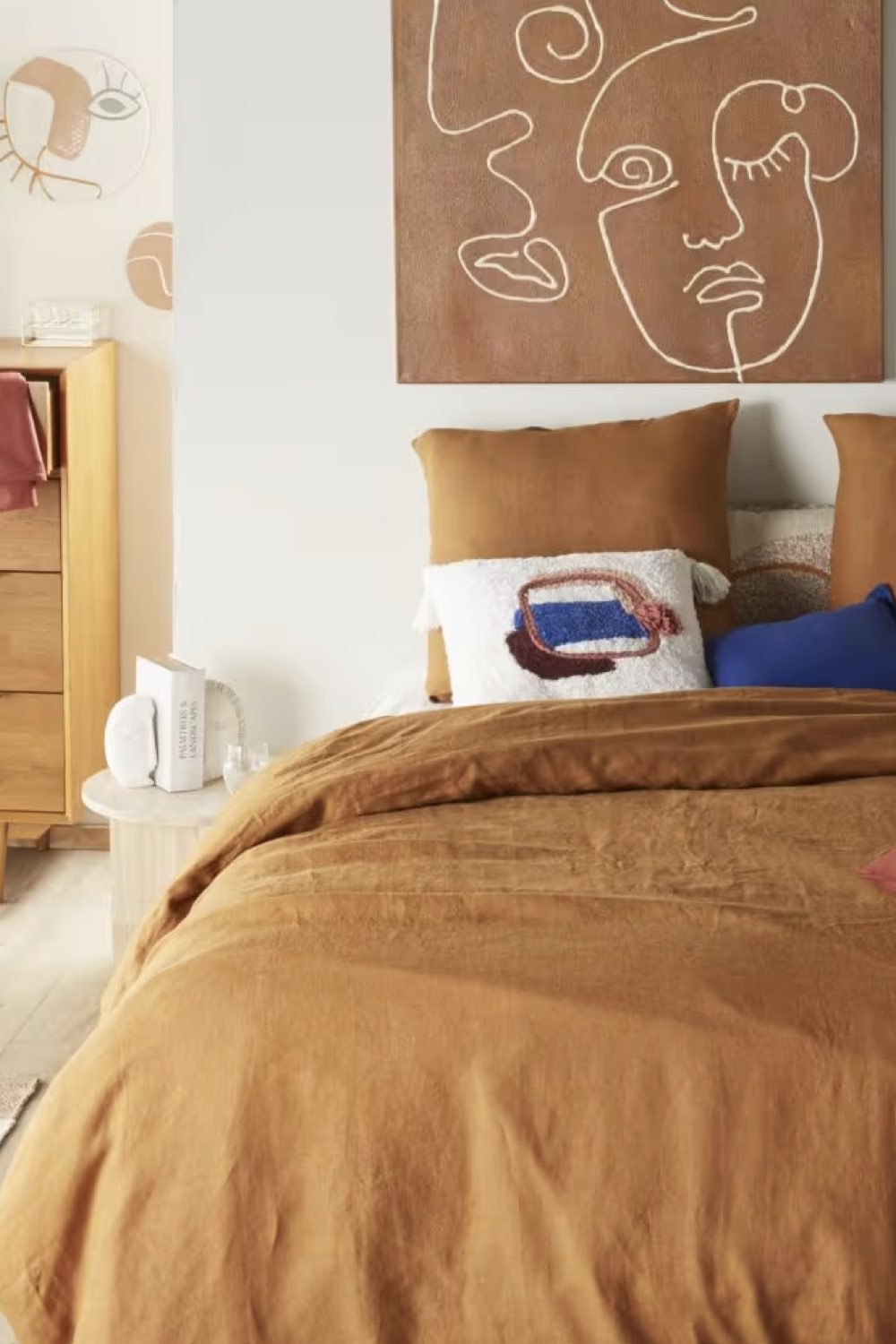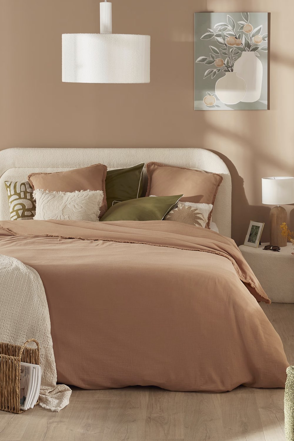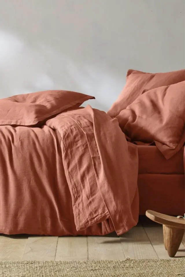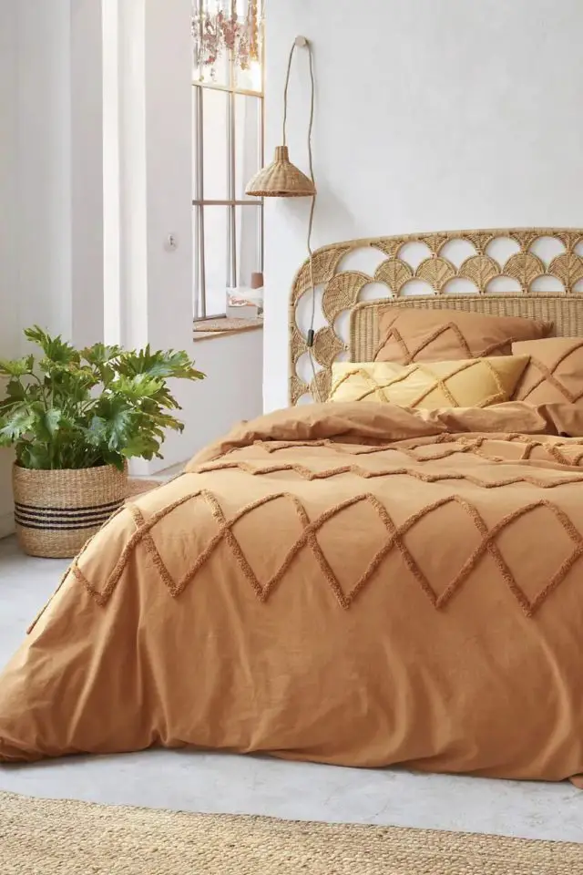L'automne est en train de s'installer confortablement par chez vous. Il n'est pas encore temps de sortir le linge de lit en flanelle mais vous devez peut-être sentir la fraîcheur prendre ses aises dans la chambre. Aujourd'hui, on va regarder comment réchauffer l'atmosphère grâce au linge de lit. Il ne faut pas sous-estimer le pouvoir décoratif des textiles dans votre chambre notamment le linge de lit. Aujourd'hui, je vous propose une sélection de housses de couettes et de parures aux couleurs automnales.