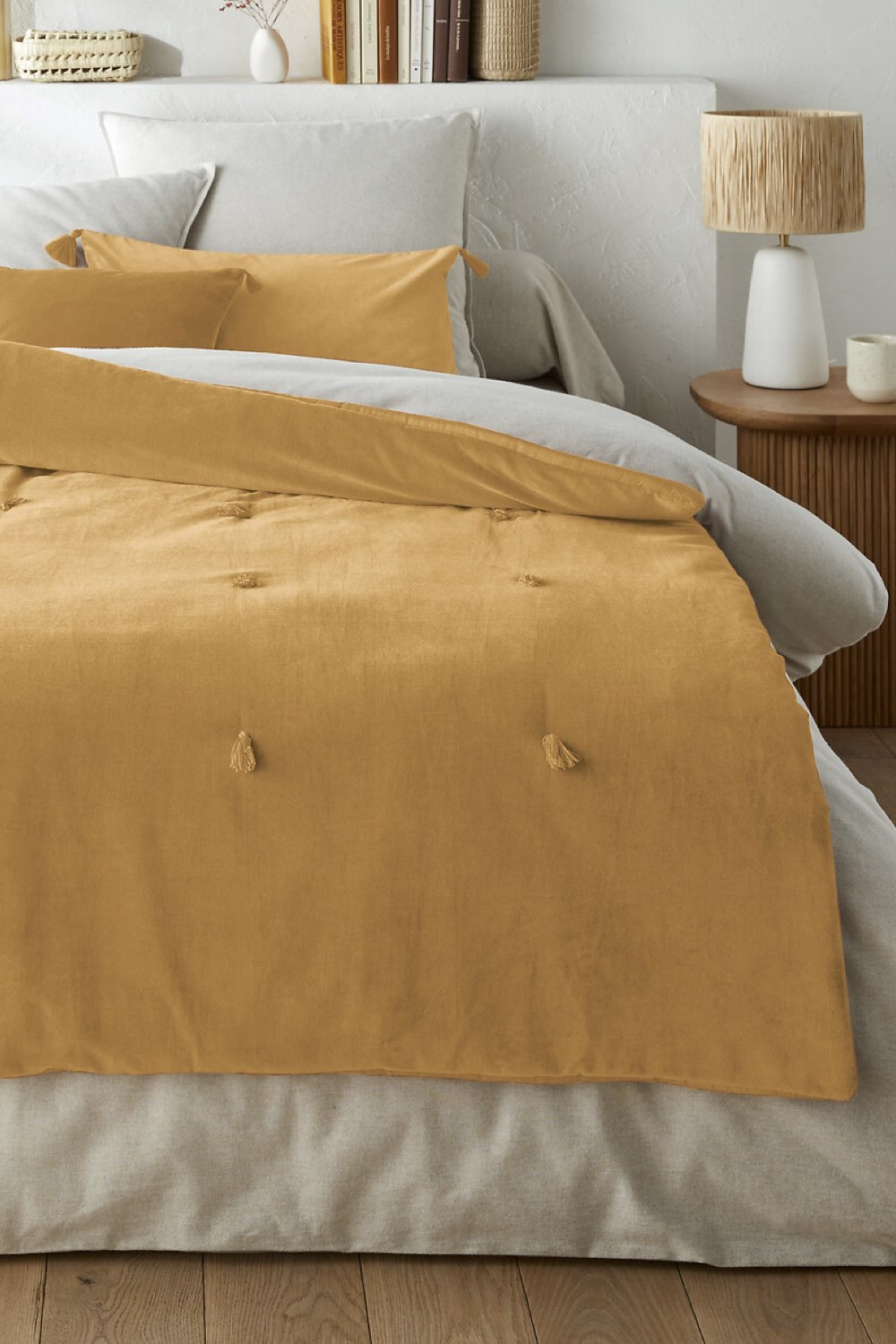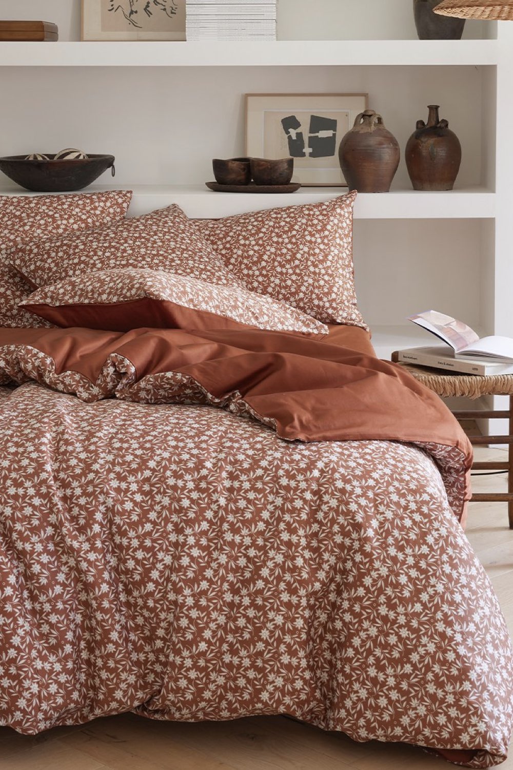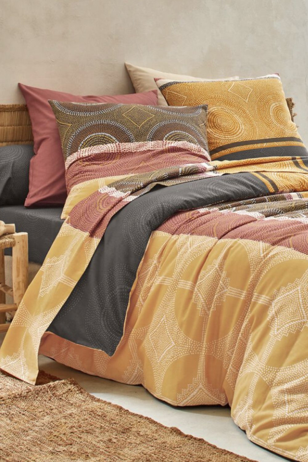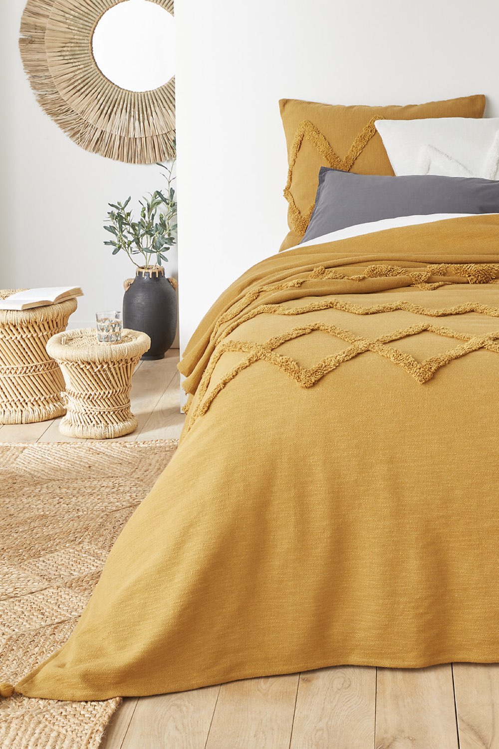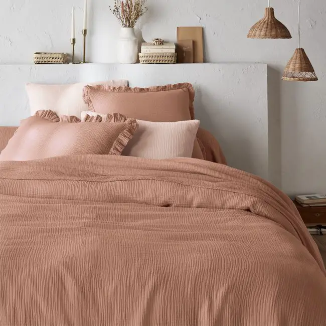 L'automne est en train de s'installer confortablement par chez vous. Il n'est pas encore temps de sortir le linge de lit en flanelle mais vous devez peut-être sentir la fraîcheur prendre ses aises dans la chambre. Aujourd'hui, on va regarder comment réchauffer l'atmosphère grâce au linge de lit. Il ne faut pas sous-estimer le pouvoir décoratif des textiles dans votre chambre notamment le linge de lit. Aujourd'hui, je vous propose une sélection de housses de couettes et de parures aux couleurs automnales.