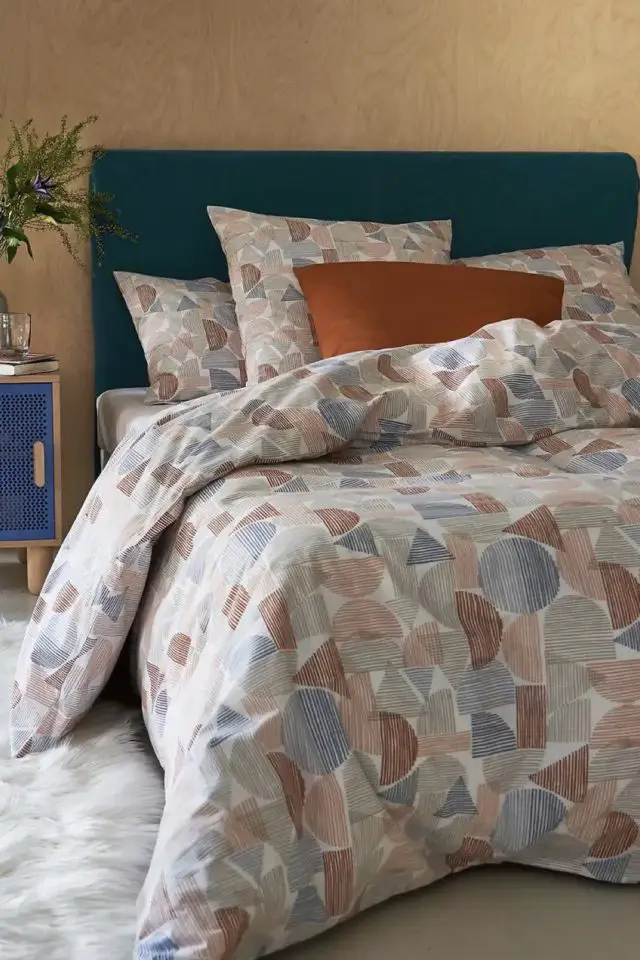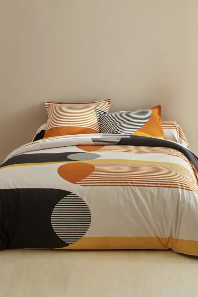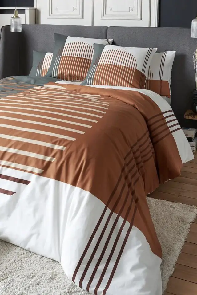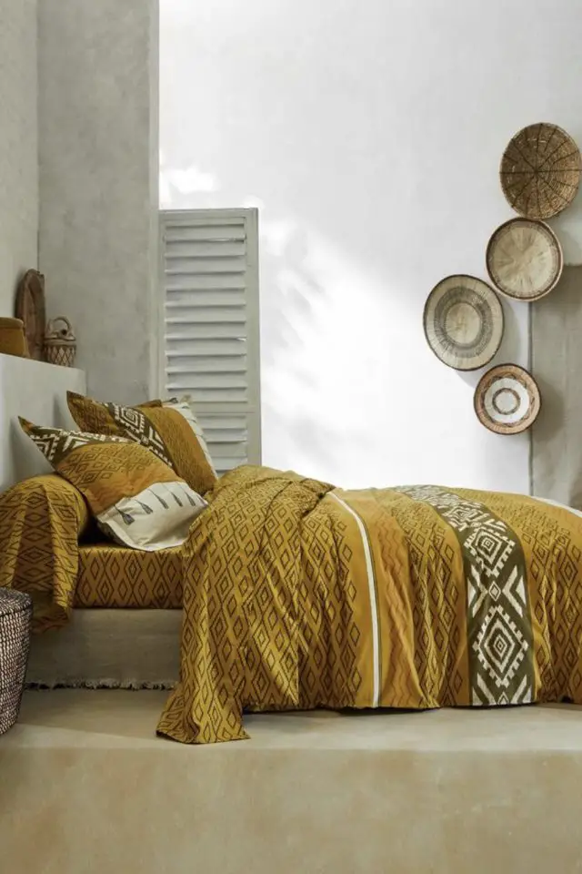 On retrouve des motifs ethniques pour une chambre bohème par exemple avec une légère touche de noir (pas en quantité suffisante pour rendre le linge austère et froid). Le motif végétal est une possibilité: fleurs, feuillage tropical, etc. Ce ne sont pas des motifs propres à l'automne mais ils sont relatifs à la nature. Enfin, il y a les motifs géométriques. je les aime bien parce qu'ils vont offrir à la chambre une ambiance moderne.