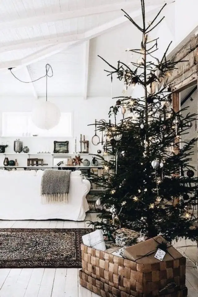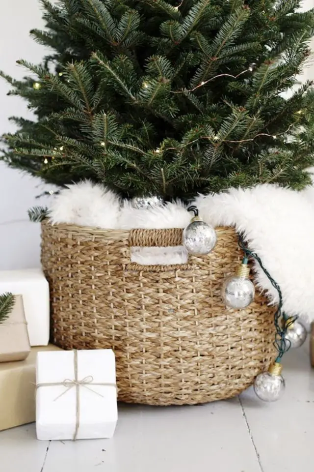 - Récupérer un grand panier en osier pour cacher le pied du sapin;