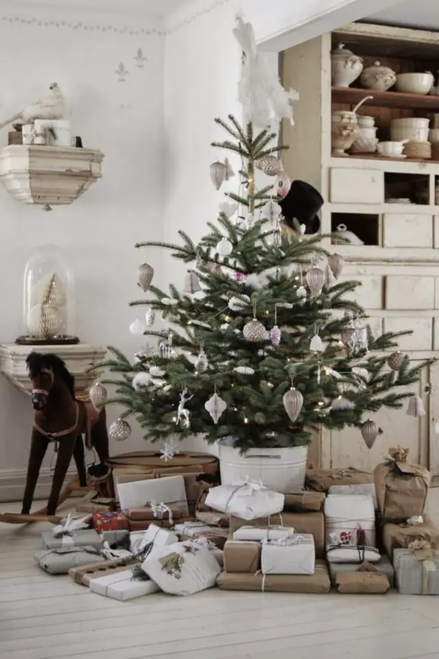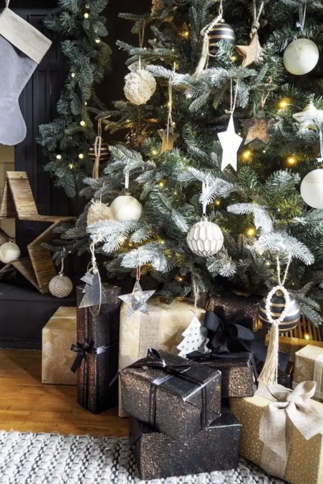 - Des cadeaux emballés sobrement au pied du sapin (avec du papier kraft ou du papier de récup');