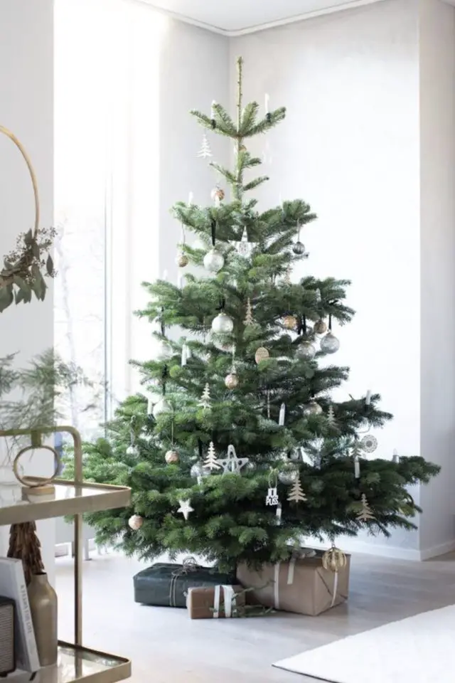 Comme je l'écrivais juste avant, le style scandi est assez simple. Une déco de sapin épurée qui ne cache pas et ne dénature pas l'arbre. Voici quelques pistes pour décorer votre sapin: