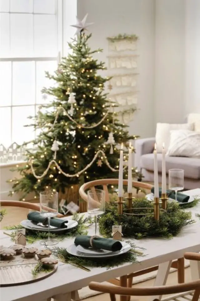 Vous avez déjà du voir ce type de déco de sapin qui est à la fois naturel, douillet, simple, fait main. On a une touche un peu écolo, des couleurs neutres. C'est un décor de sapin assez dépouillé. On retrouve un désir de faire moins pour laisser plus de place à ce qui est important (passer du bon temps avec les personnes que l'on aime par exemple). En version mini, le sapin scandi passe très bien dans un appartement!