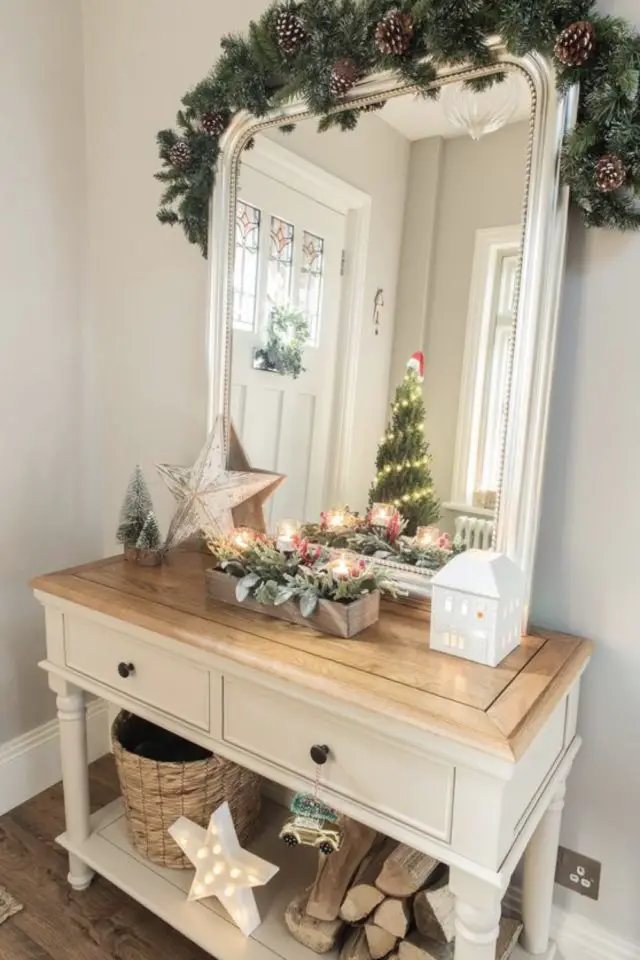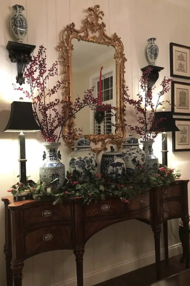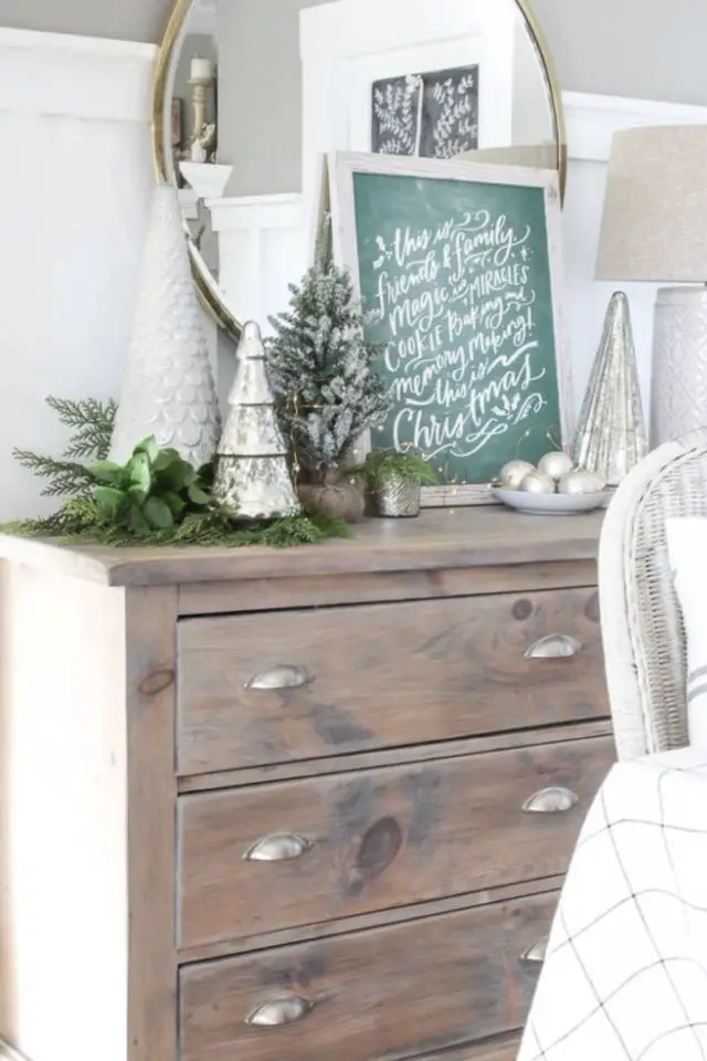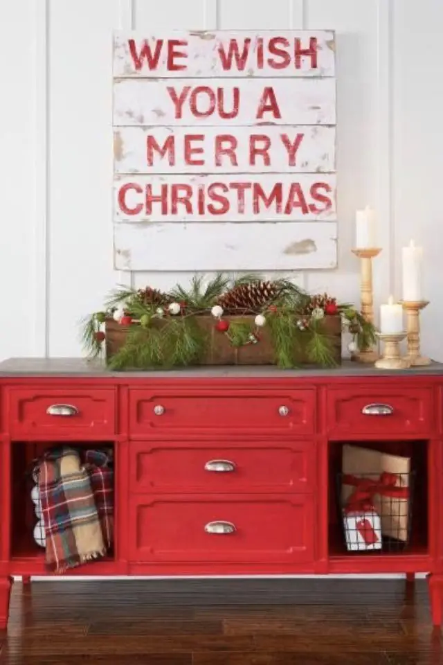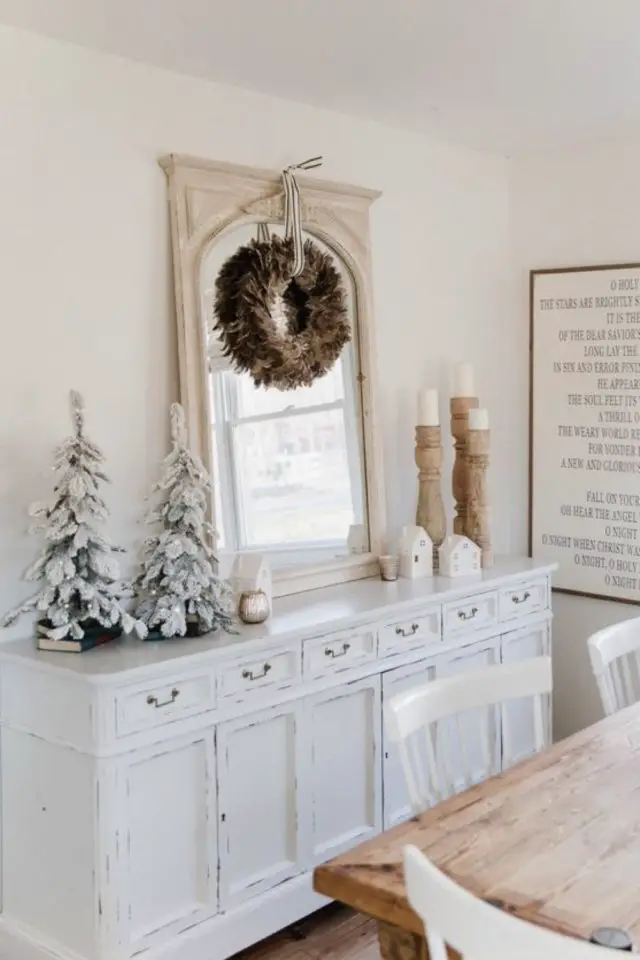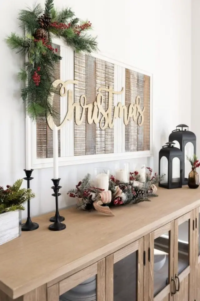 De nombreux objets peuvent trouver leur place au dessus du buffet pour Noël: