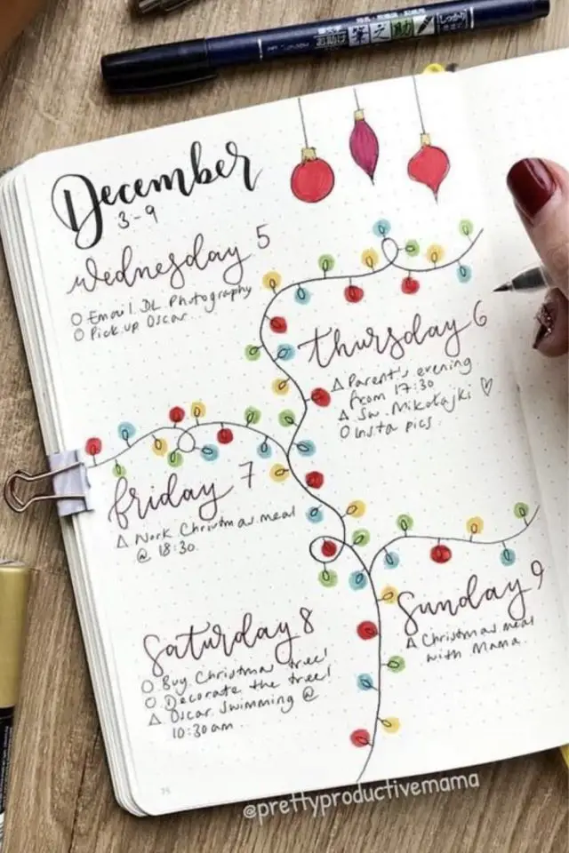 Des idées à copier pour un bullet journal sur le thème de Noël