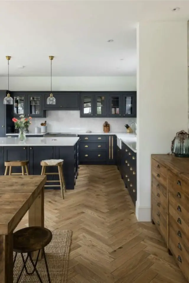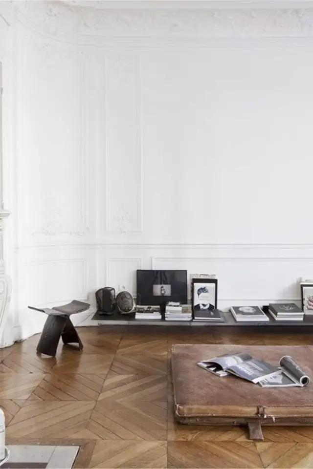 Le parquet on le connait toutes et tous mais dans la grande majorité des cas, il est posé en longueur, les lames les unes à la suite des autres. C'est ce qu'on appelle une pose à l'anglaise et c'est très bien quand on cherche à créer un intérieur chaleureux, contemporain et parfois épuré. Pourtant le parquet peut être posé de différentes manières. Cela demande plus de temps, plus de savoir-faire aussi. Ce sont des techniques plus anciennes qui donnent beaucoup de charme à un espace. On peut par exemple parler de la pose en point de Hongrie (comme des chevrons). J'aime beaucoup le parquet à damier qui me rappelle l'un des appartements d'un bon ami. Et je me surprends maintenant à apprécier le parquet marqueterie. J'aime le jeu des essences, des couleurs qui créent du motif au sol à l'instar d'un carrelage ancien.