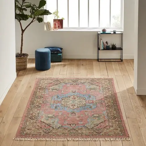 - Un tapis au look ancien ou coloré sous la table donnera beaucoup de charme à votre espace. On peut penser aux tapis persans, aux tapis mongols qui vous feront voyager.