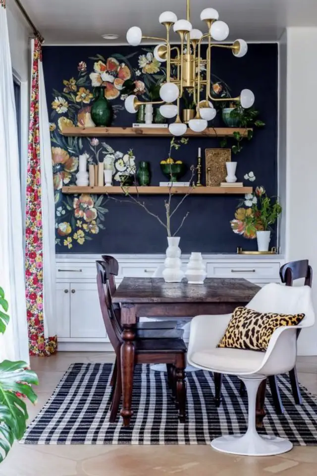 - Oser le motif floral grâce au papier peint, au textile sur les rideaux, le tapis ou les housses de chaises... Pour mixer fleurs & vintage, on peut par exemple penser aux designs de William Morris.
