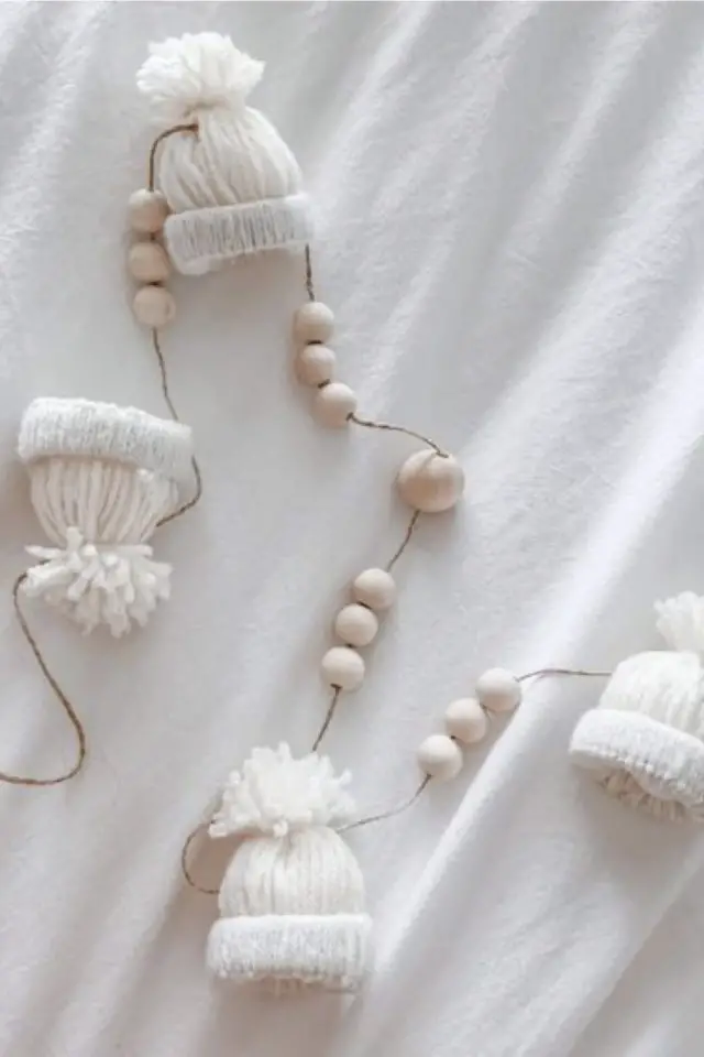 - Des décorations à suspendre dans le sapin à base de laine feutrée ou pompons;