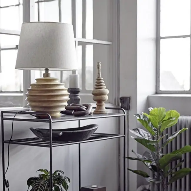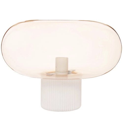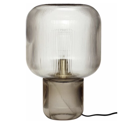 Enfin pour terminer cette partie autour de l'apparence de la lampe à poser, on peut évoquer la question de la transparence et de l'opacité. J'en parlais juste au dessus avec l'abat-jour en métal qui coupe la lumière. La tendance en ce moment est au verre transparent, teinté, strié qui lui laissera passer plus de lumière par exemple. Il est aussi possible de jouer la carte du matériau opaque mais ajouré qui va créer un motif avec la lumière.
