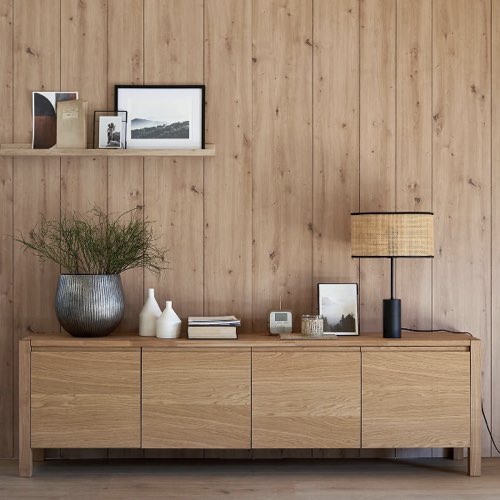 La puissance et le rayonnement de la lampe n'est pas suffisant. Cette lampe peut servir d'appoint par exemple si le buffet (ou votre petite bibliothèque) se trouve à côté d'un fauteuil où vous aimez lire. La lampe sur le buffet joue généralement un rôle d'éclairage d'ambiance pour créer une atmosphère plus tamisée le soir. Si vous souhaitez mettre en évidence un objet posé sur le buffet ou les tableaux accrochés au mur, vous pouvez choisir une lampe avec pied orientable (voire une lampe de bureau).